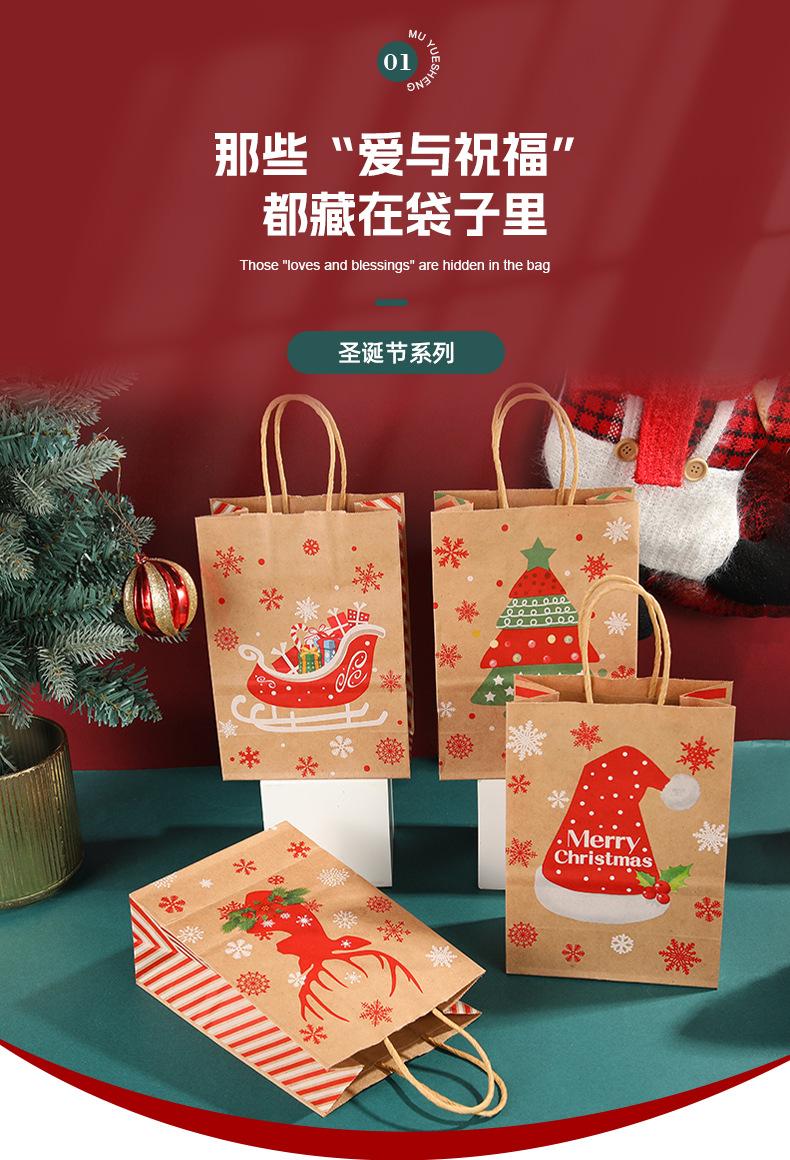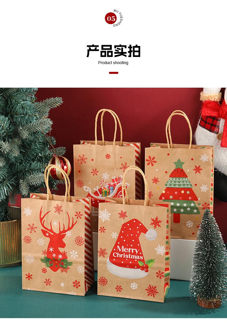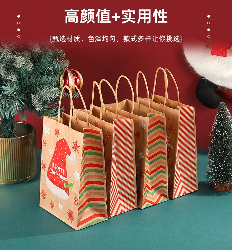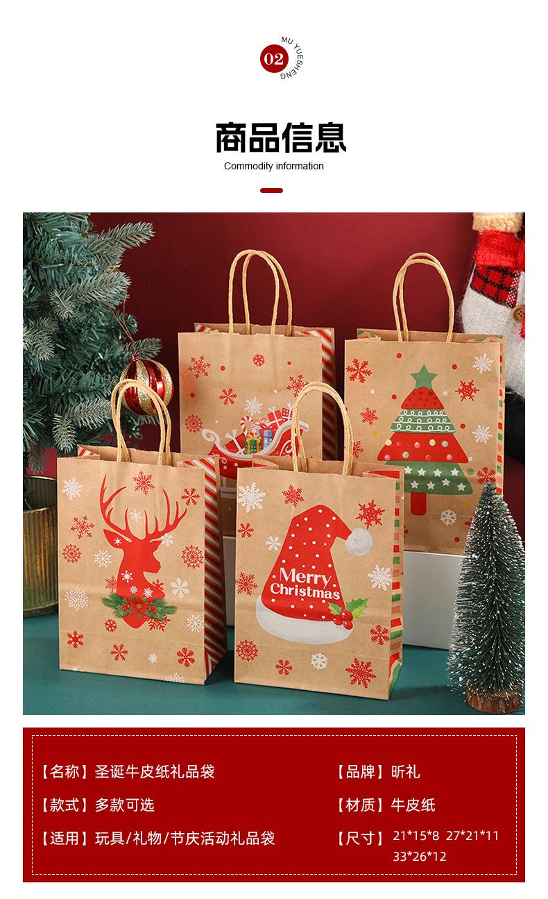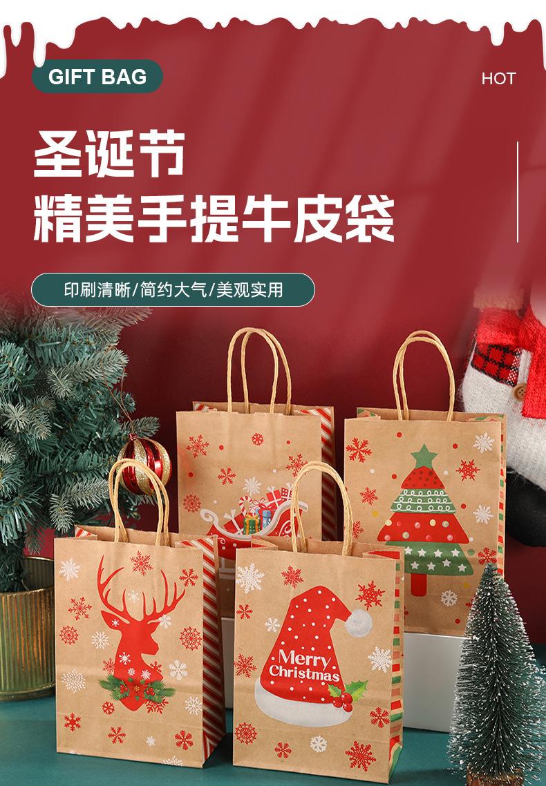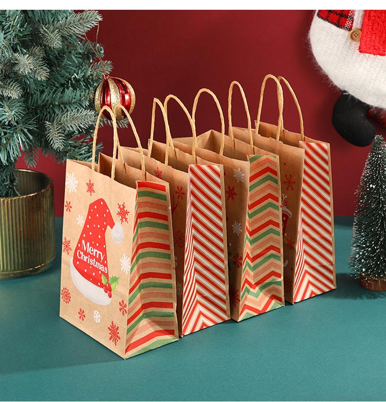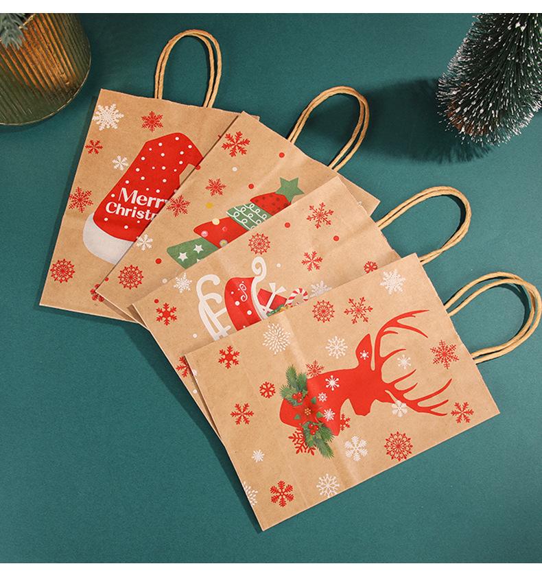 Bolsa de Papel Kraft con Patrón Navideño de Dibujos Animados Bolsa de Regalo para Empaque de Manzana de Nochebuena Bolsa de Regalo Popular Estilo Ins