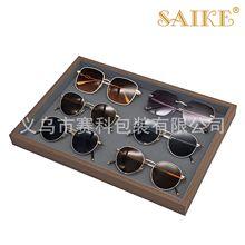 | Bandeja de exhibición de accesorios para gafas de sol, joyas, gafas de terciopelo de microfibra de nogal negro con borde biselado interior, venta al por mayor |