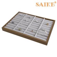 | Accesorios para relojes y joyas de madera de nogal negro al por mayor, mire la bandeja de venta de exhibición de paleta dentro de la microfibra |