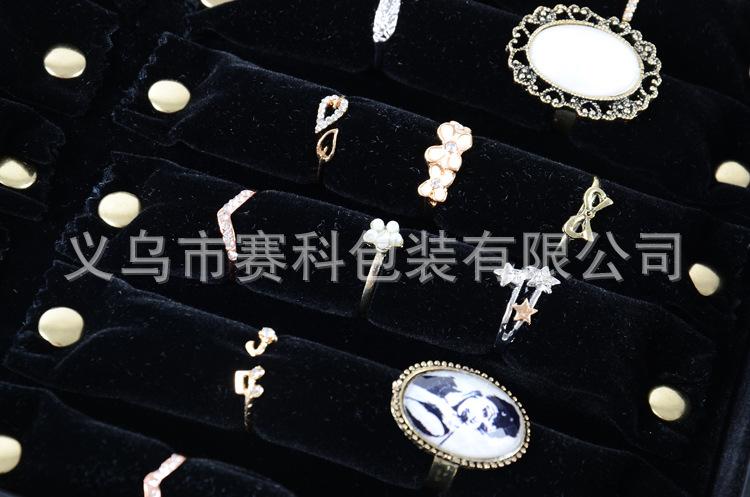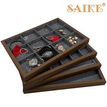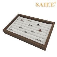 | Bandeja de exhibición de anillos de joyería de madera de nogal negro al por mayor, bandeja de joyería de alta gama de gamuza |