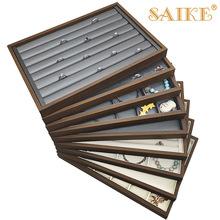 | Bandeja de exhibición de regalos, joyas, relojes, gafas de madera de nogal negro, venta al por mayor, uso positivo y negativo |