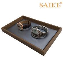 | Bandeja de visualización de accesorios de joyería para relojes de alta gama, de madera de nogal negro y cuero cepillado gris pistola, venta al por mayor al contado |
