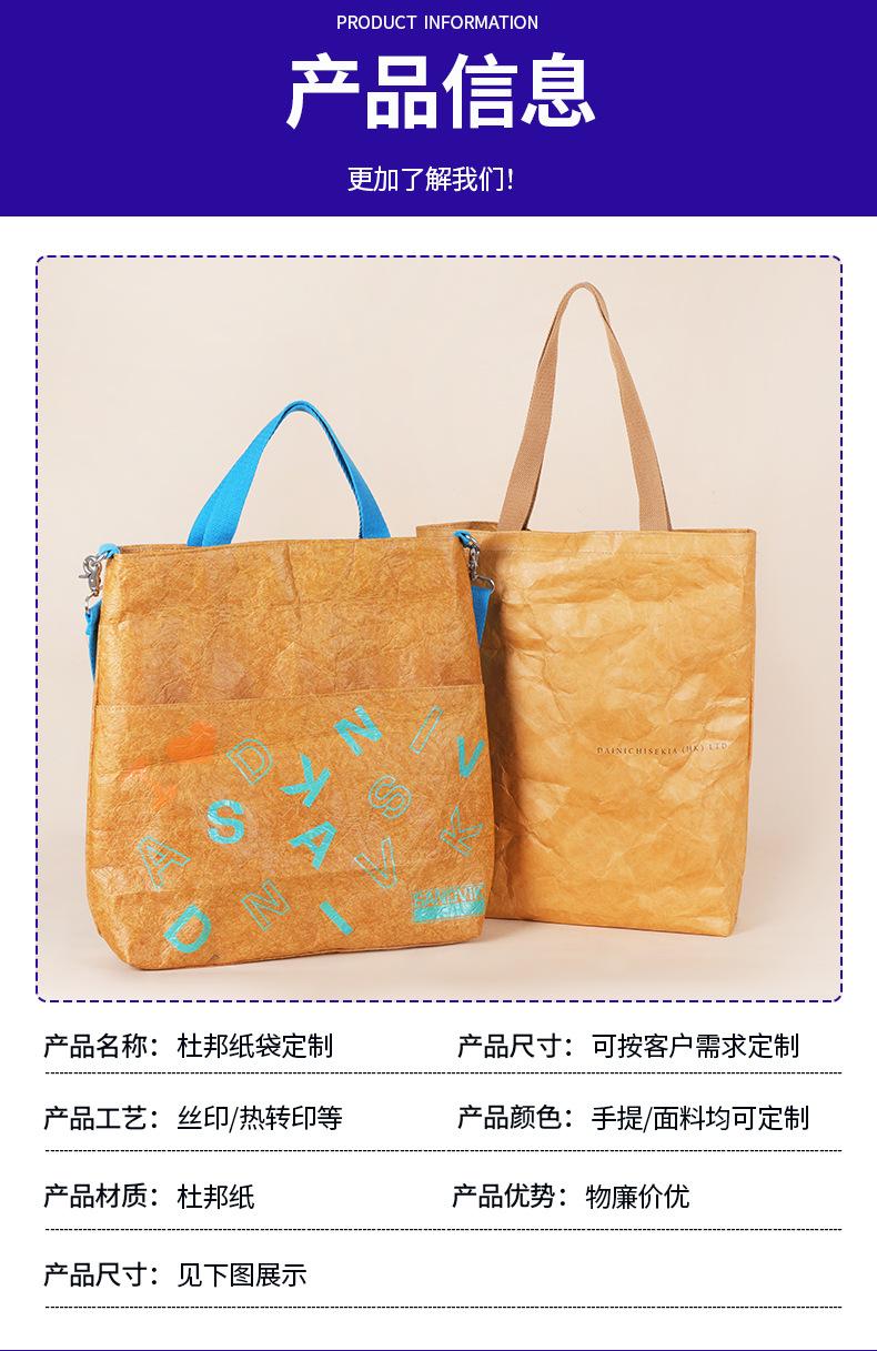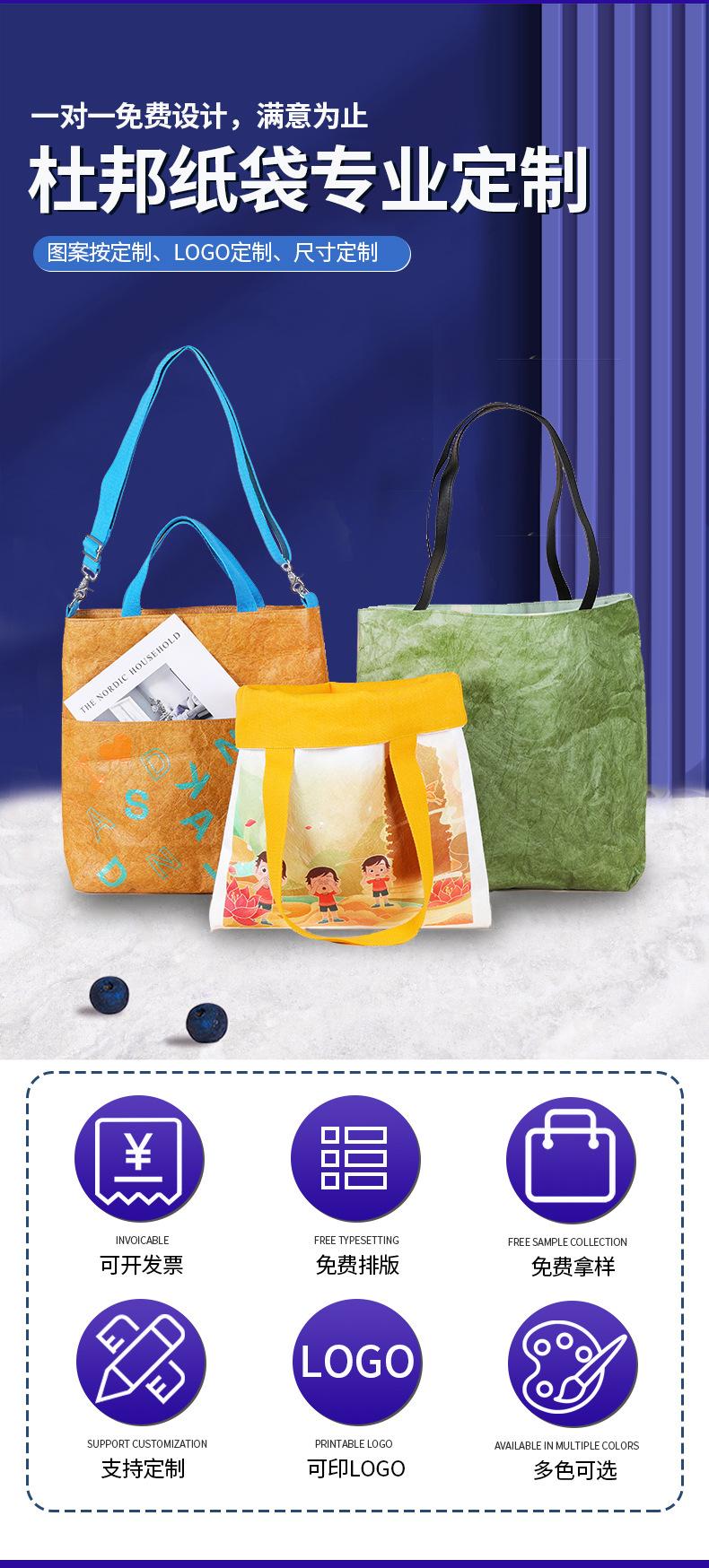 Bolsa de Papel Dupont Personalizada por el Fabricante con Logotipo Imprimible, Lavable y Resistente al Desgarro, Bolsa Tote de Hombro Ecológica, Bolsa de Compras para Regalo
