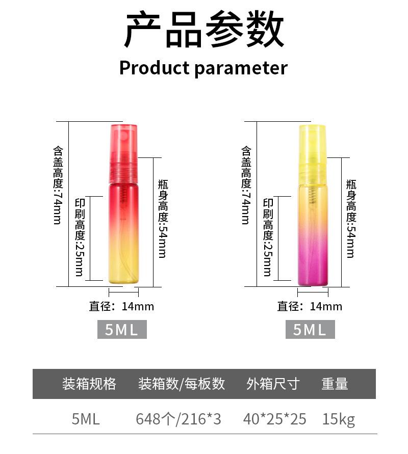 Botella de spray pequeña de 5 ml perfume botella de muestra pequeña spray degradado botella de embalaje de prueba viaje portátil