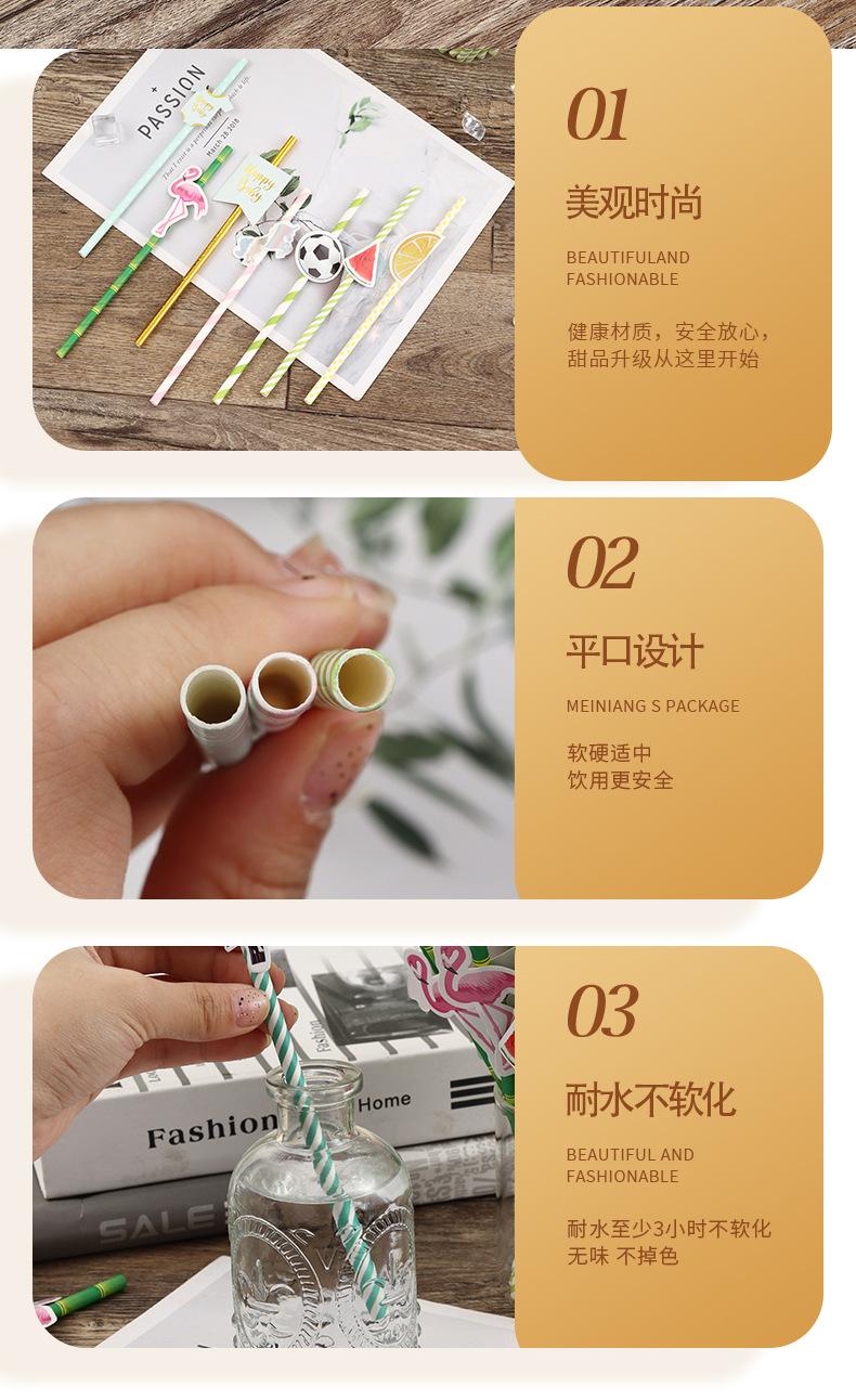Pajita de papel degradable color pajita desechable creativa para fiesta decoración tarjeta adhesiva pajita de papel para jugo al por mayor