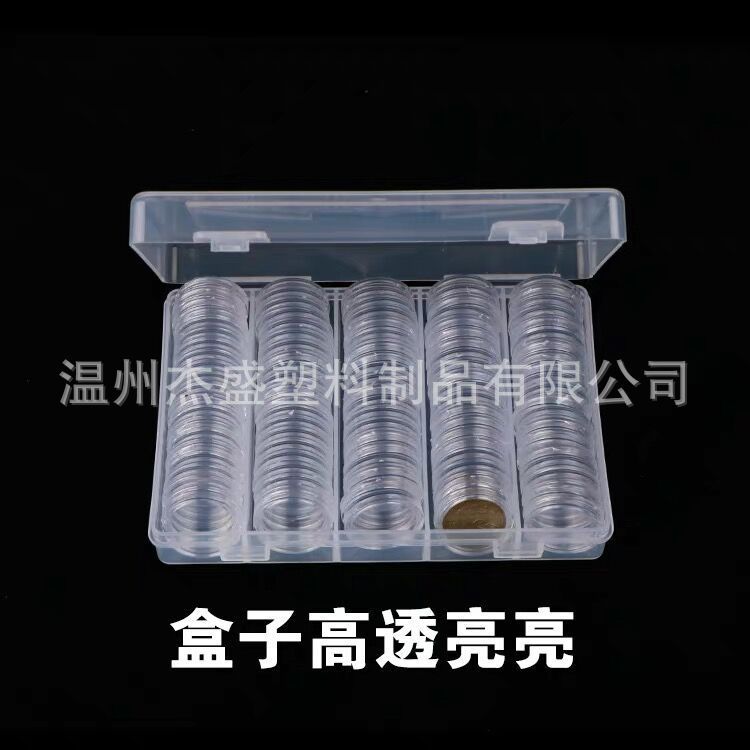 Caja redonda de 20.5 mm + caja de almacenamiento moneda loto flor de ciruelo cinco jiao caja de almacenamiento nueva versión caja protectora de cinco jiao 100 piezas