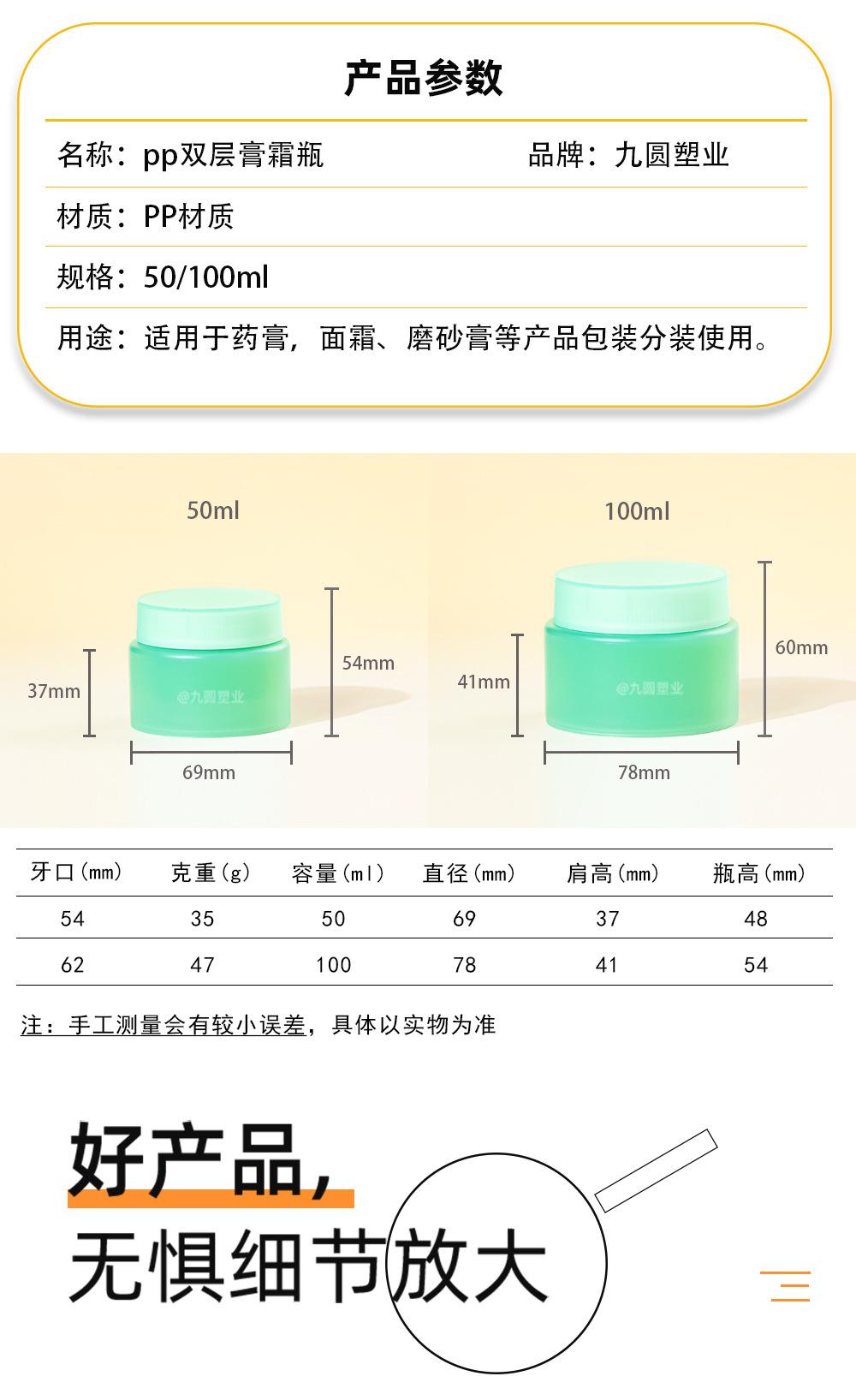50g; double layer cream bottle; pp, 100g; double-layer cream bottle; pp