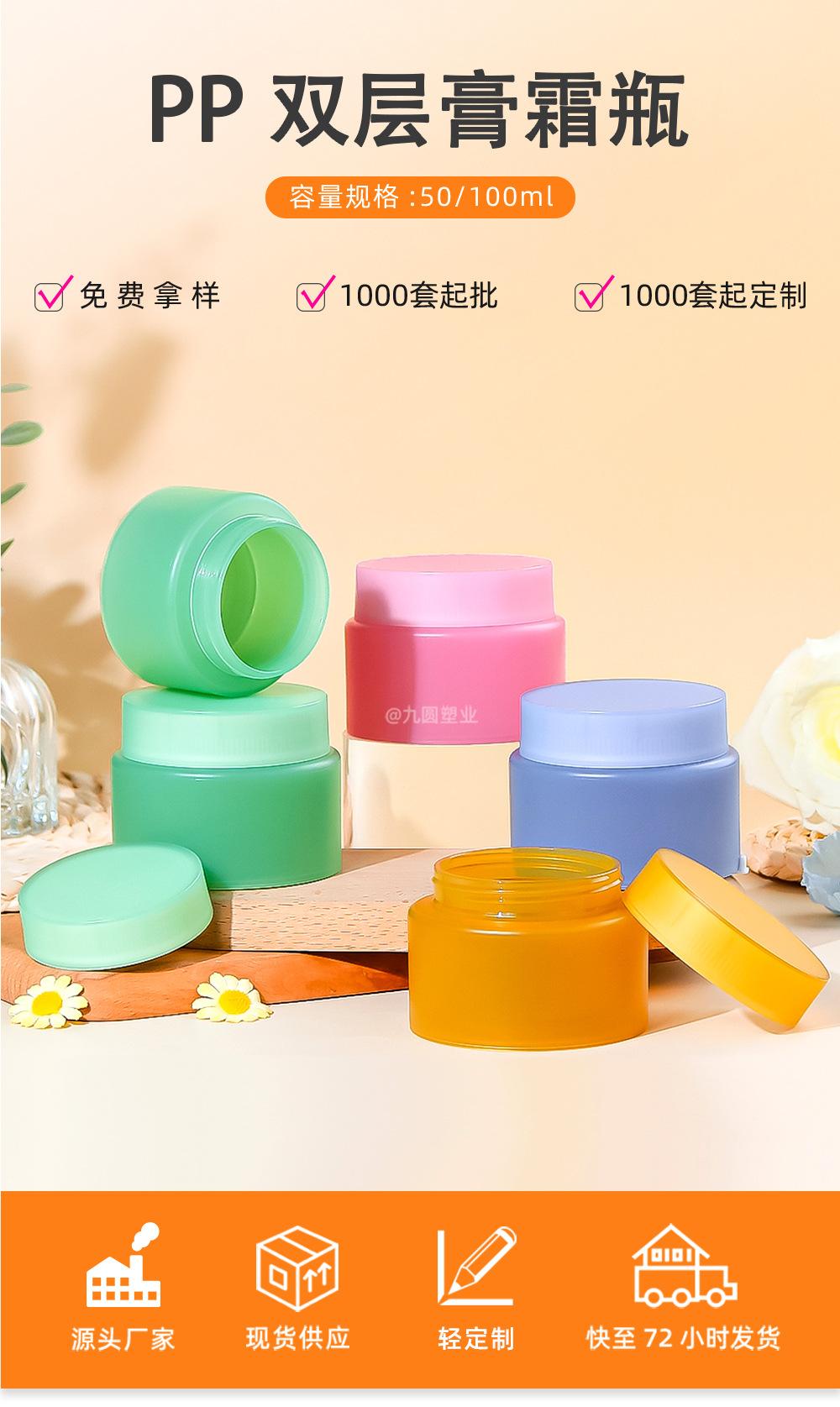 Tarro de Crema de Doble Capa de Plástico PP Reenvasado Cosmético Caja de Crema 50G100G Tarro para Exfoliante Corporal Mascarilla de Barro