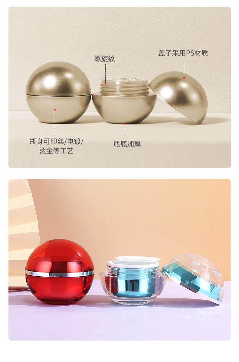 Tapa Galvanizada Crema para Contorno de Ojos Crema Facial Botella Cosmética Recargable Botella de Crema Acrílica Transparente Cuidado de la Piel Botella de Embalaje Esférica