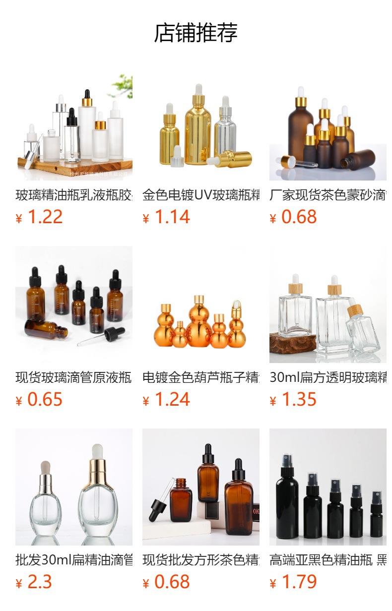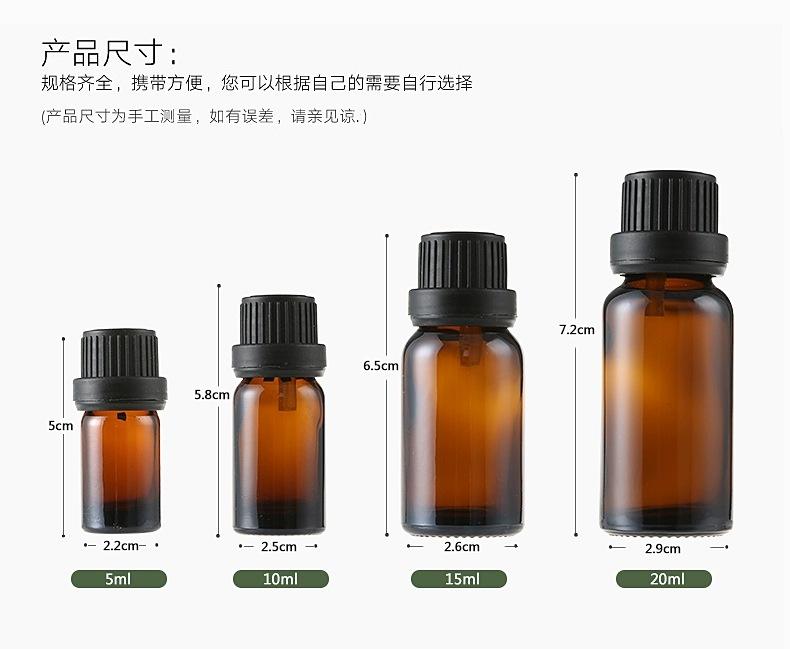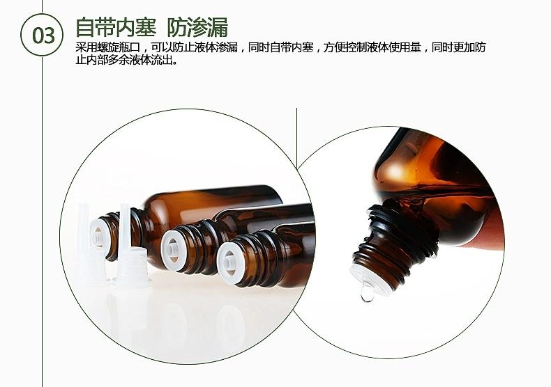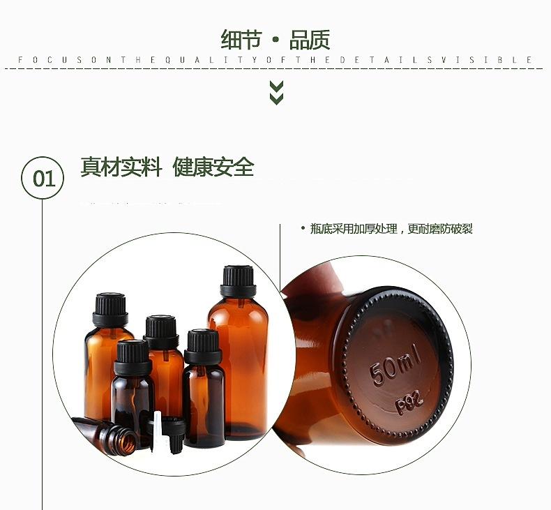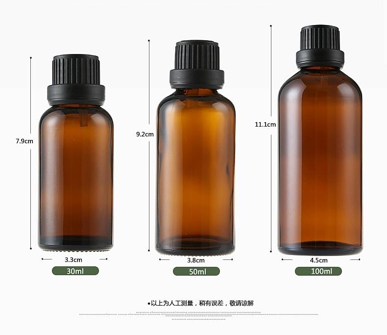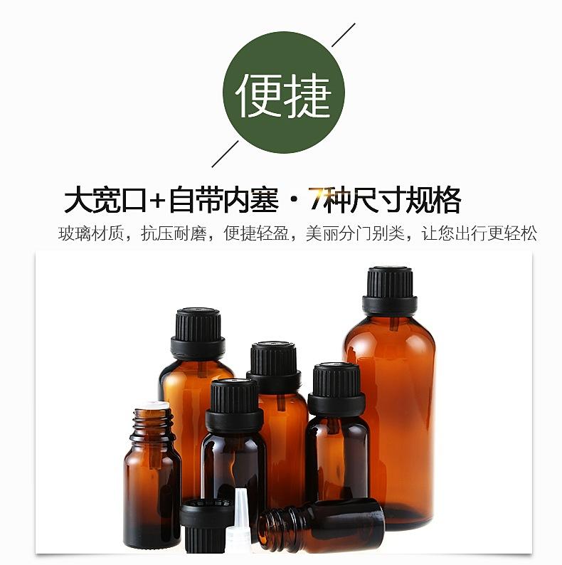 Botella de vidrio con gotero en stock 5ml-100ml pequeña capacidad tapón interior botella vacía sub-botella Botella de aceite esencial marrón