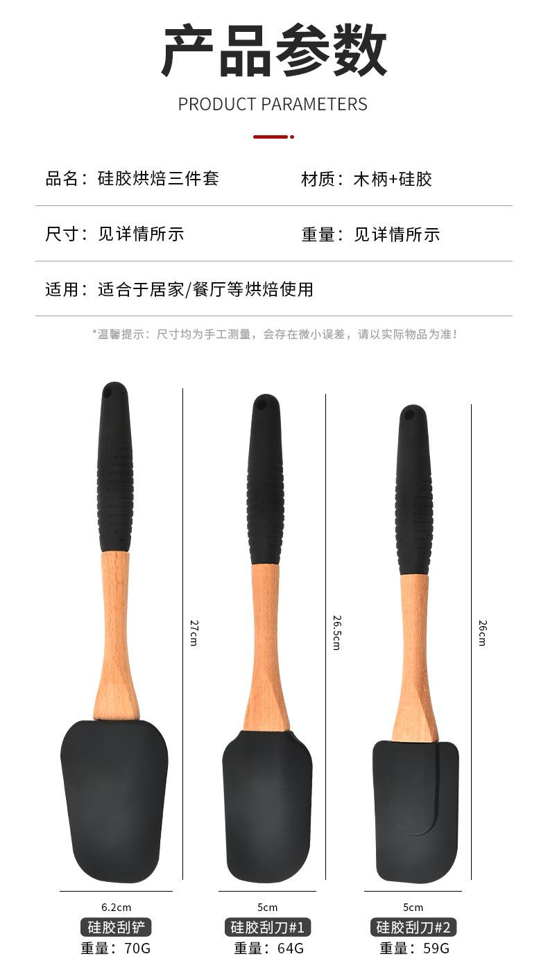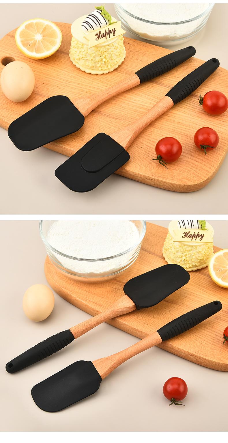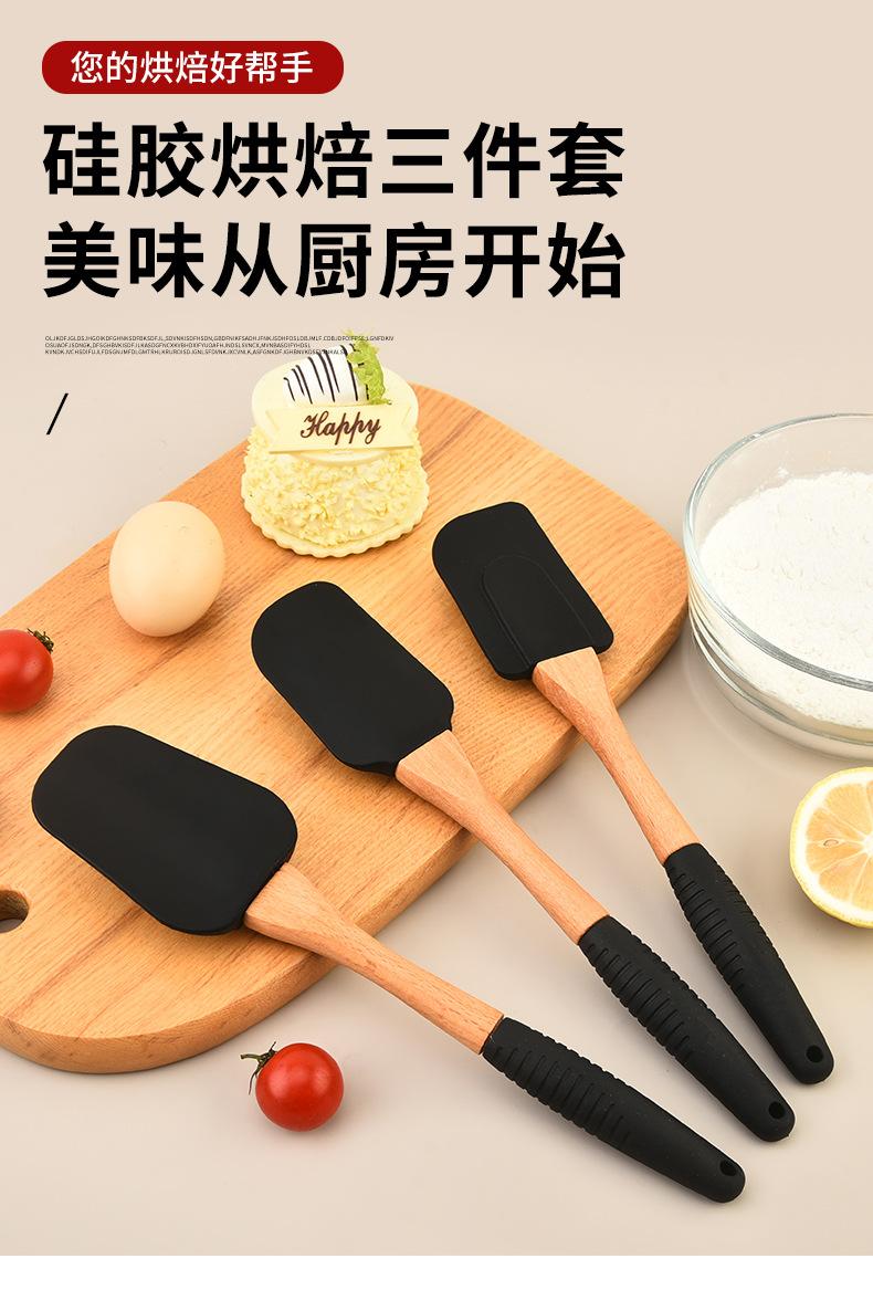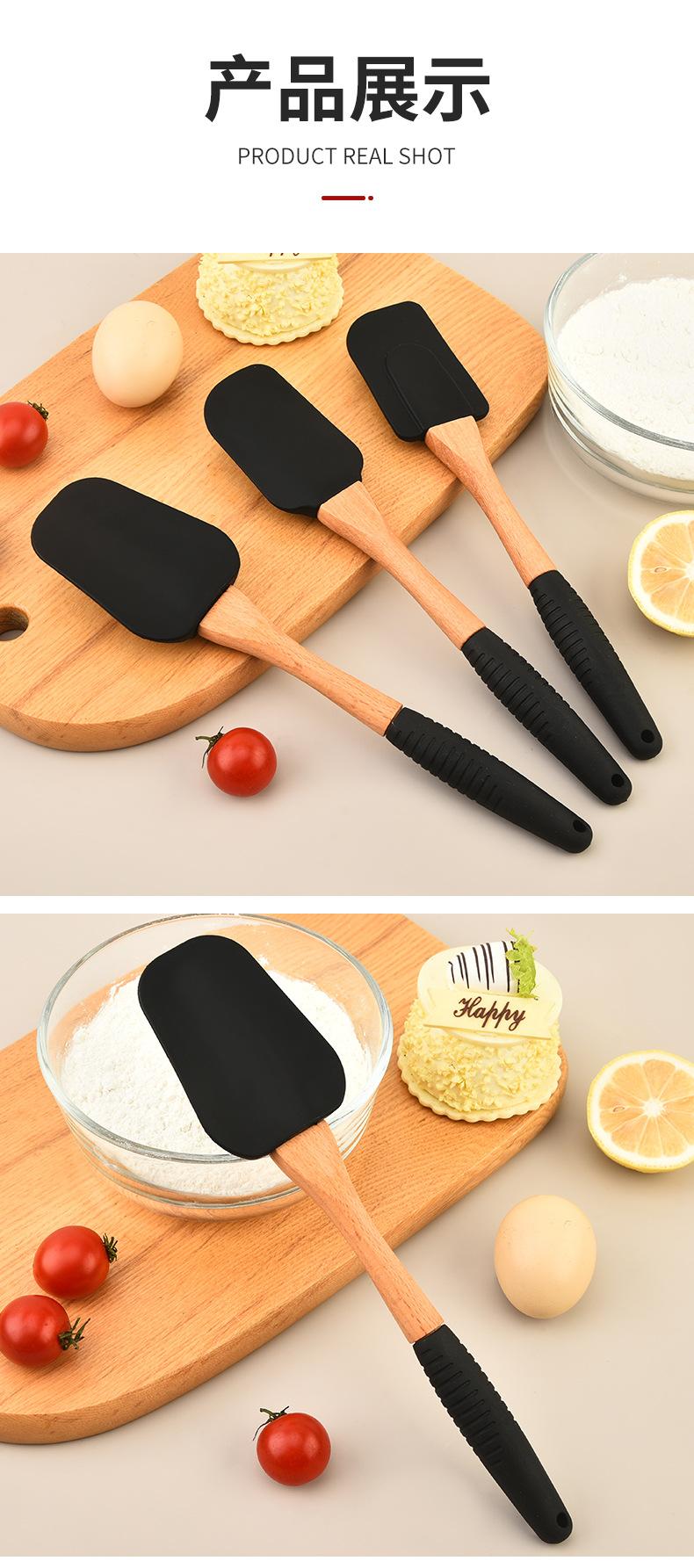 Juego de 3 espátulas de silicona con mango de madera al por mayor de fábrica, espátula para crema de pastel para el hogar, espátula, herramientas de cocina para hornear