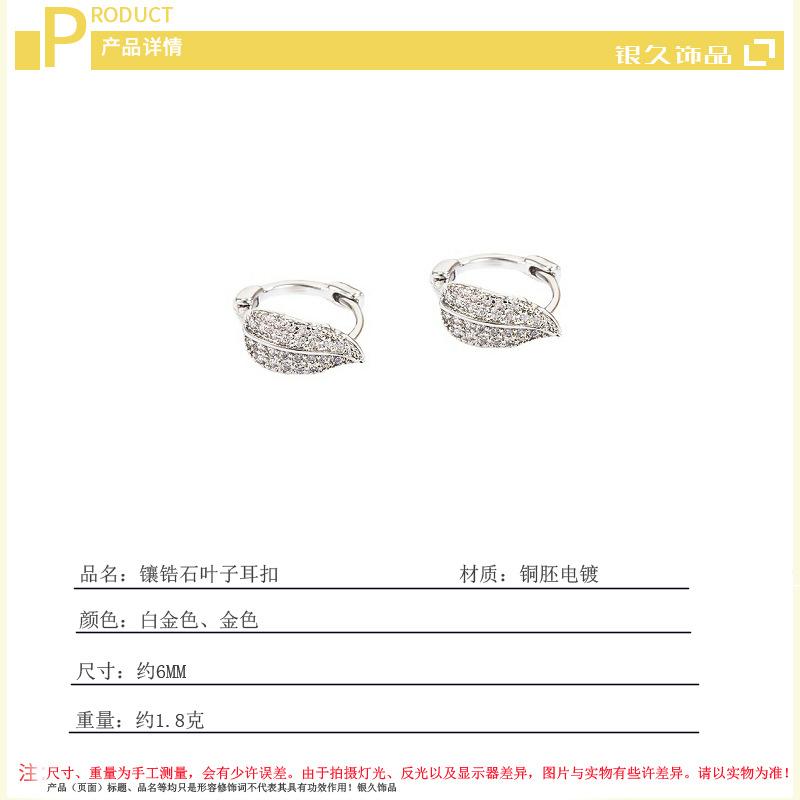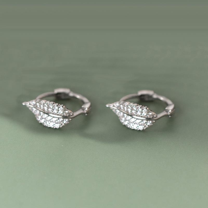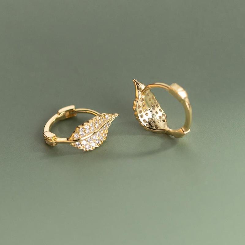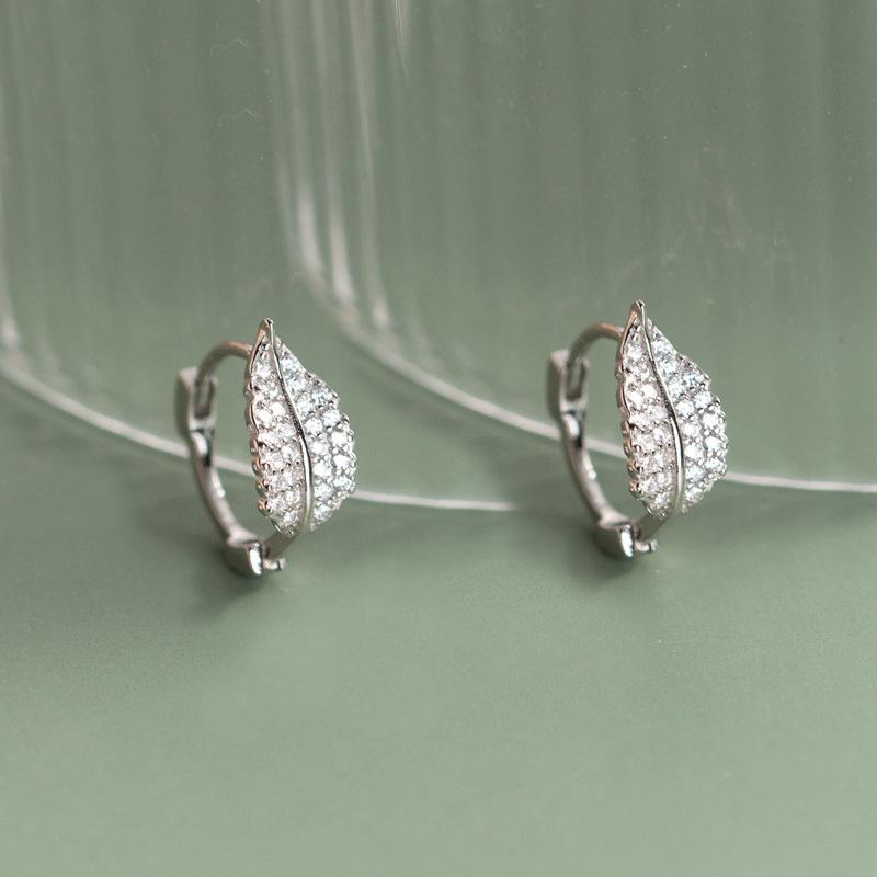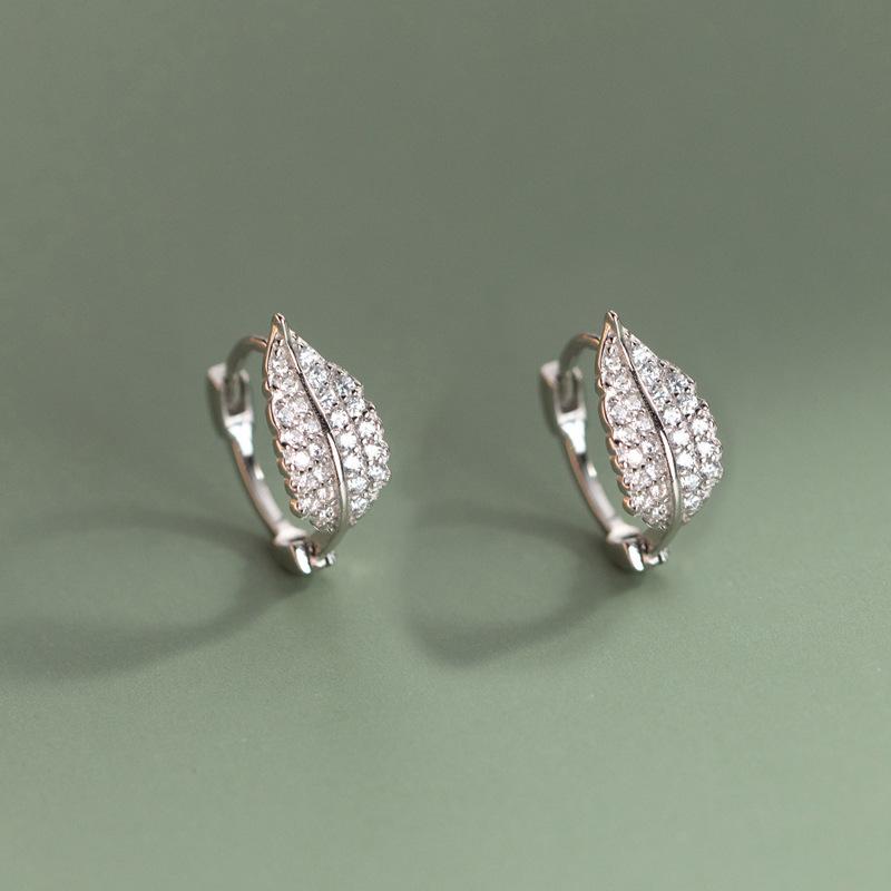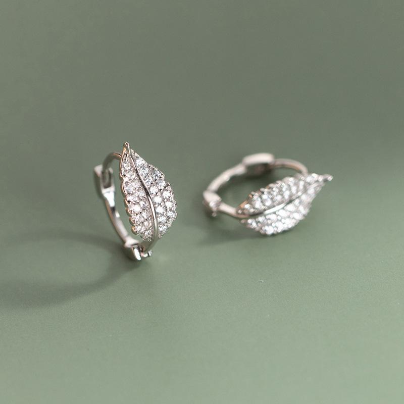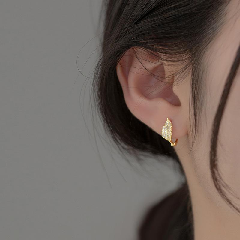 Pendientes de aro de hoja de circonita incrustada de moda, diseño de nicho, temperamento, moda, comodín, dulces, pequeños de hoja, venta al por mayor