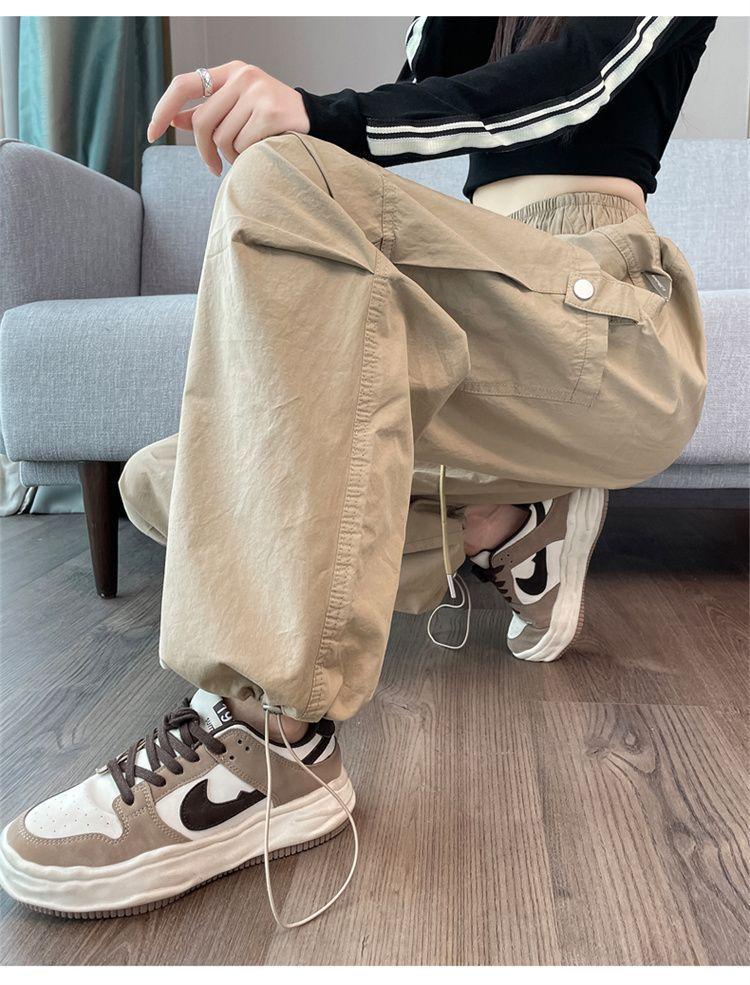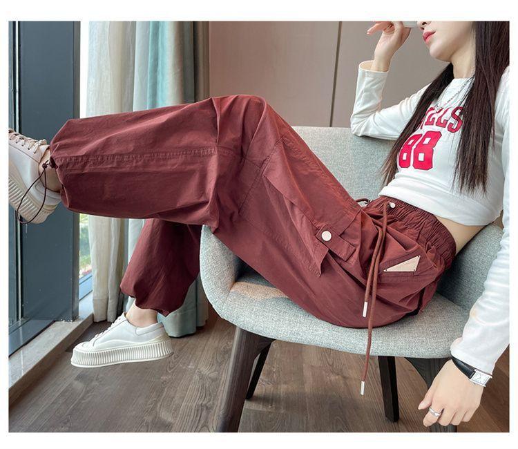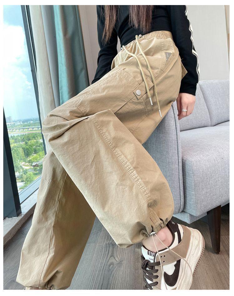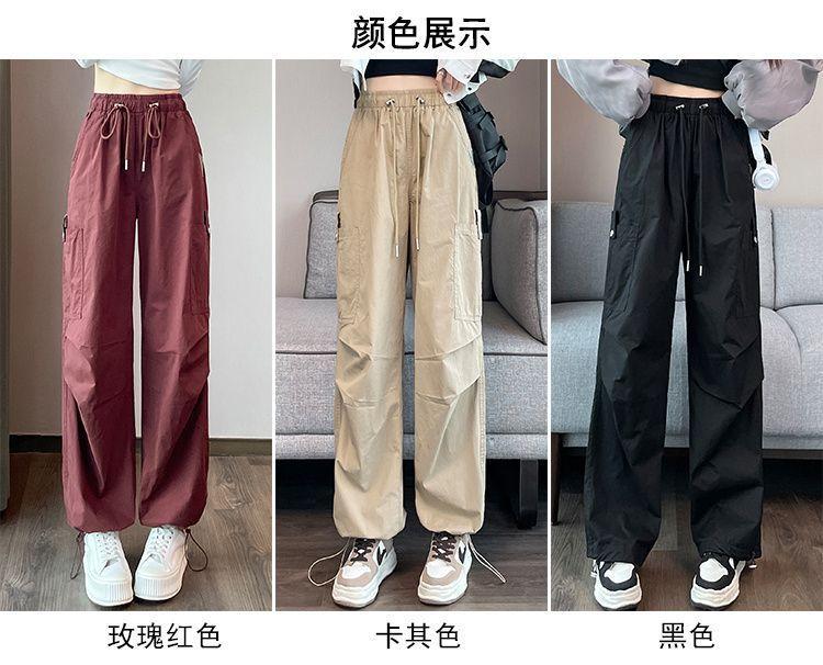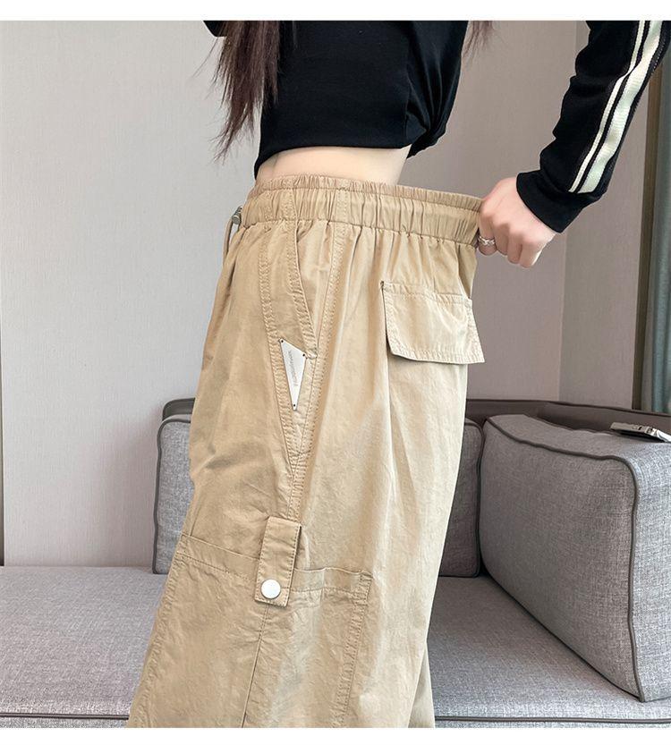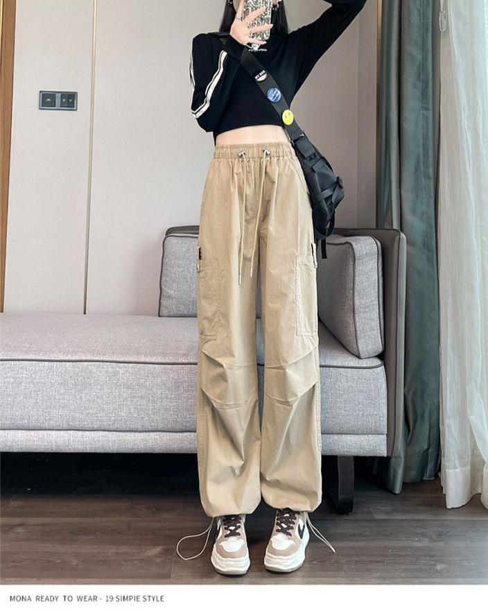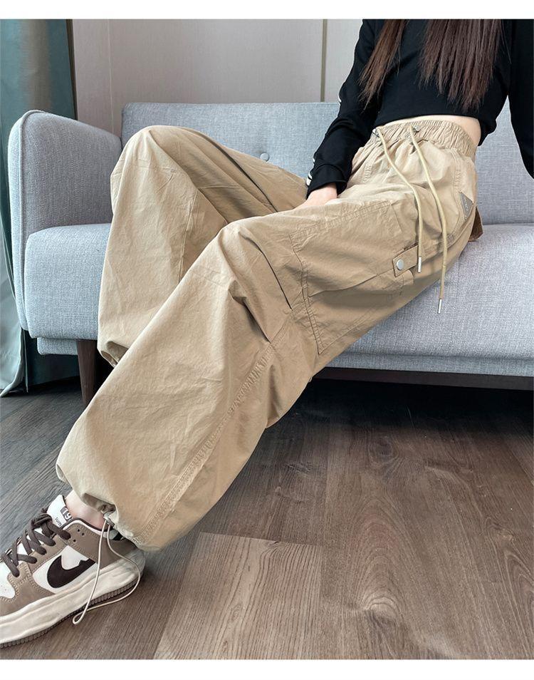 Pantalones Cargo Retro Americanos para Mujer, Estilo Delgado de Verano 2025 Nuevo Adelgazantes Casuales Rectos de Pierna Ancha Deportivos