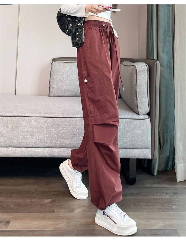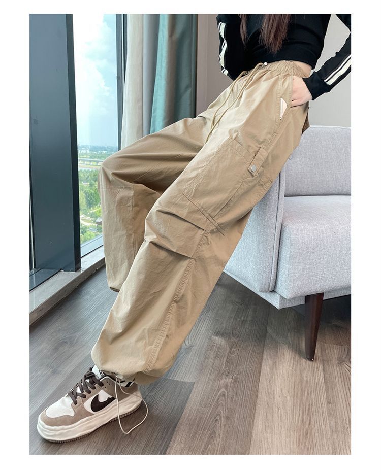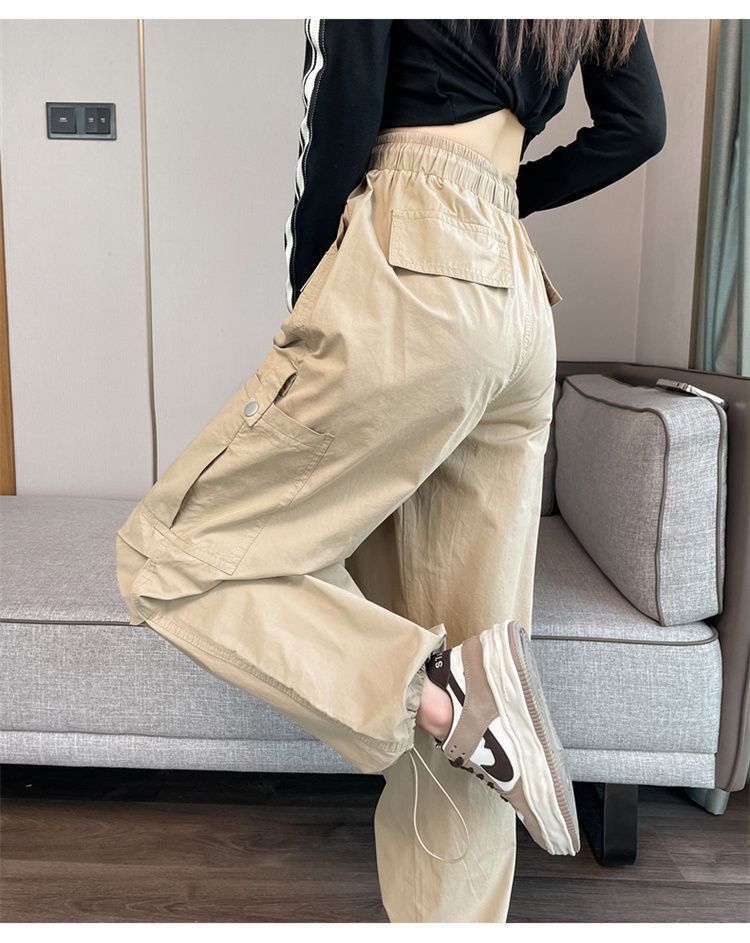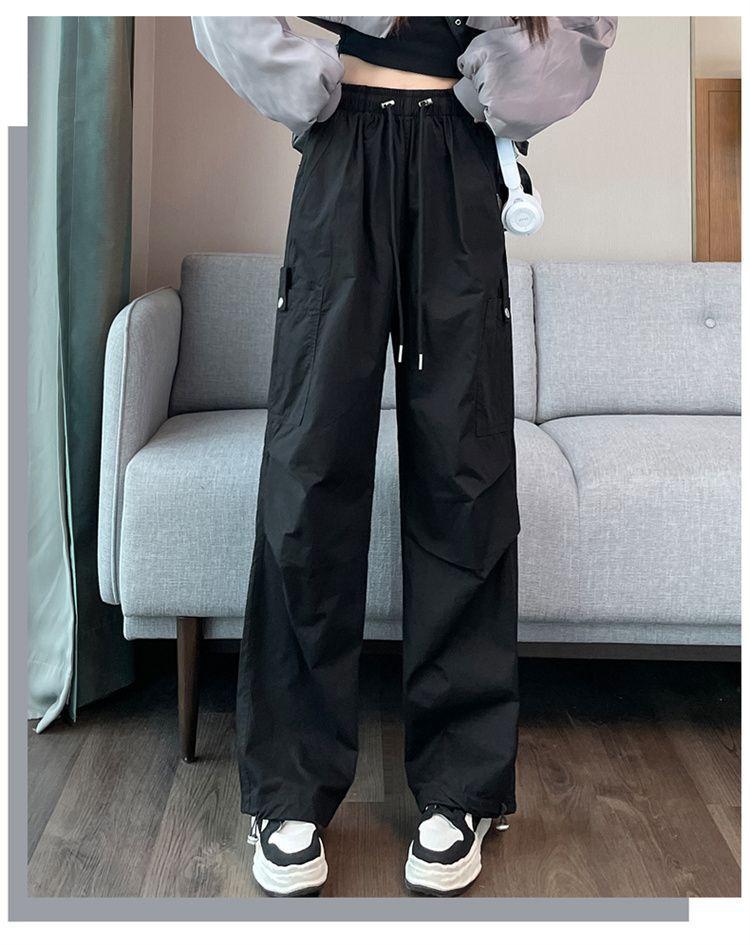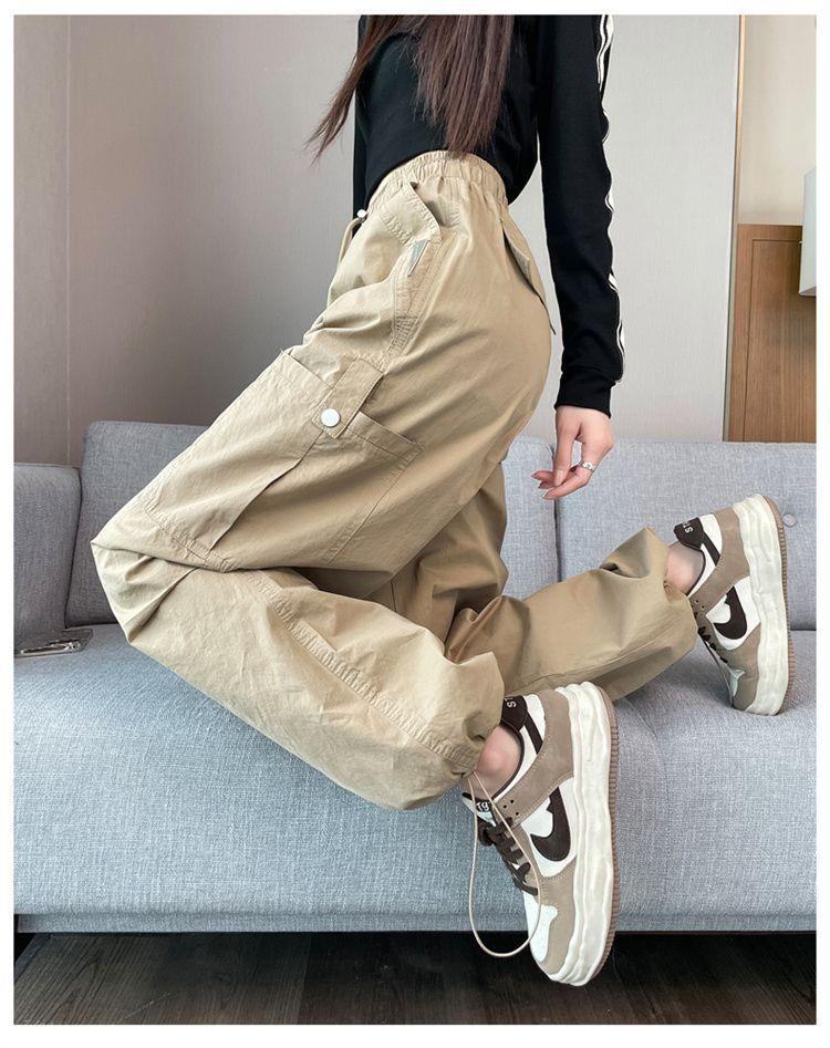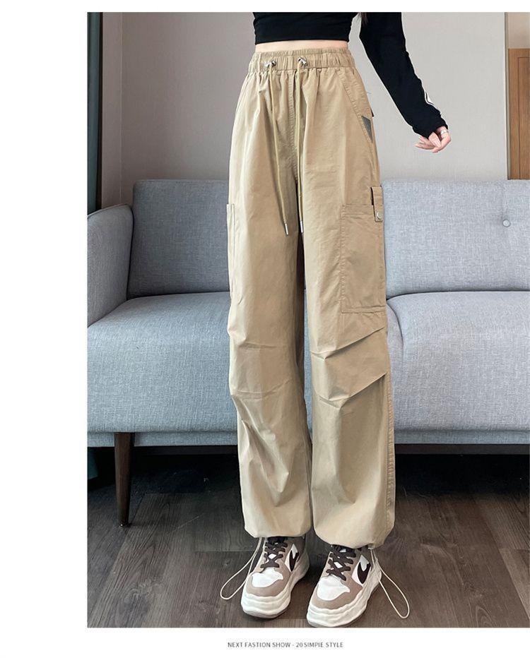 Pantalones Cargo Retro Americanos para Mujer, Estilo Delgado de Verano 2025 Nuevo Adelgazantes Casuales Rectos de Pierna Ancha Deportivos