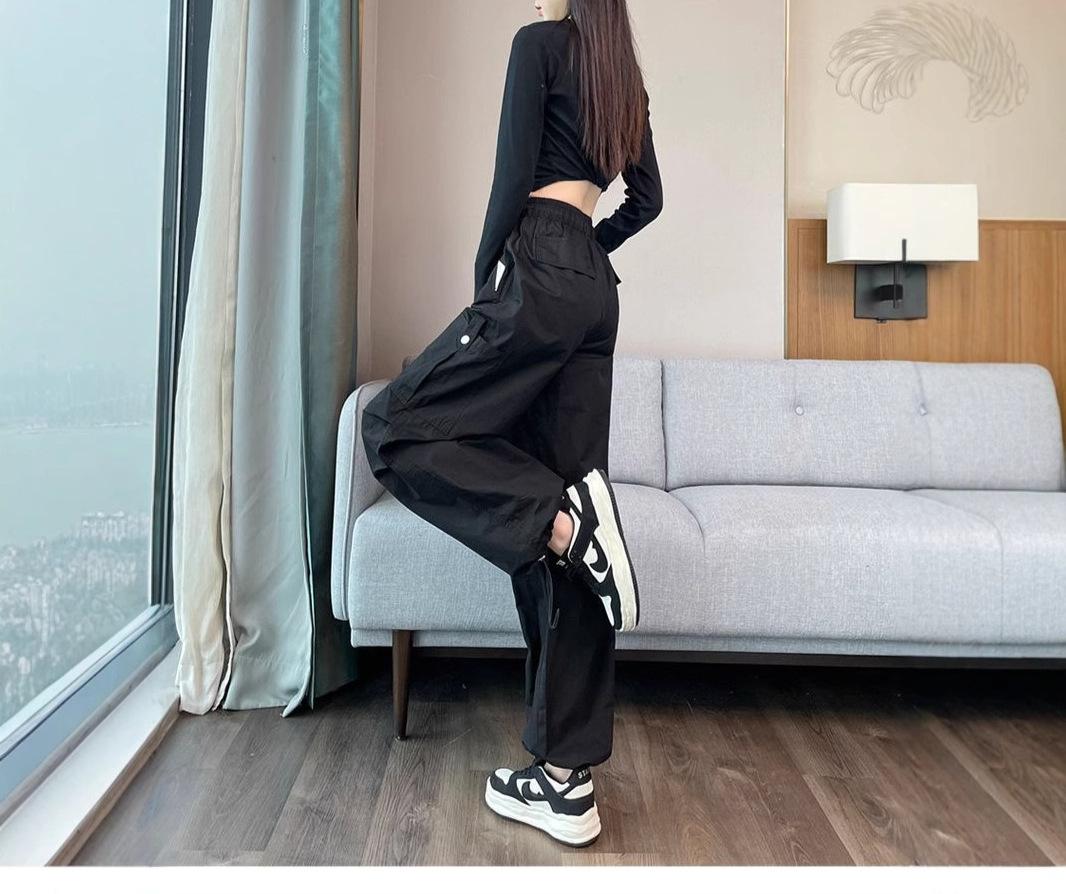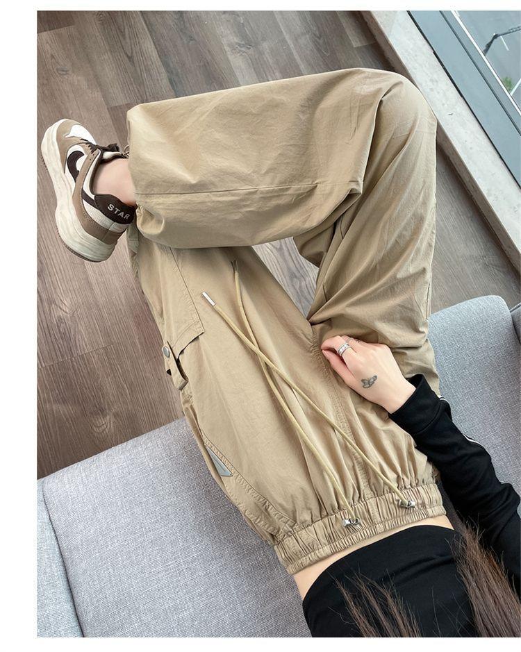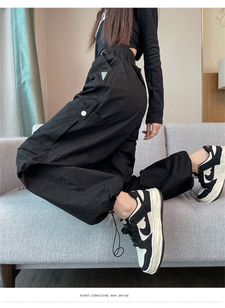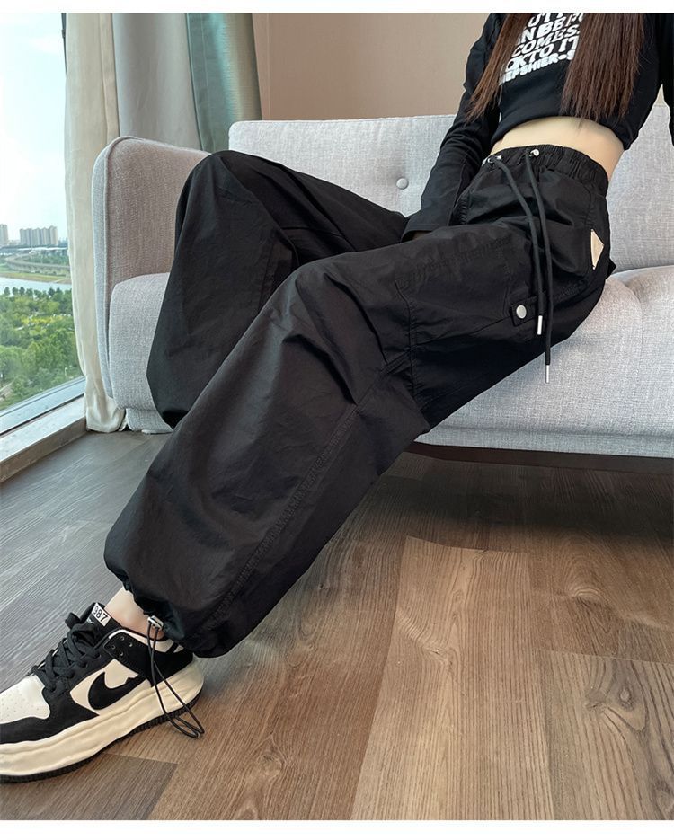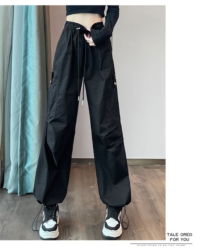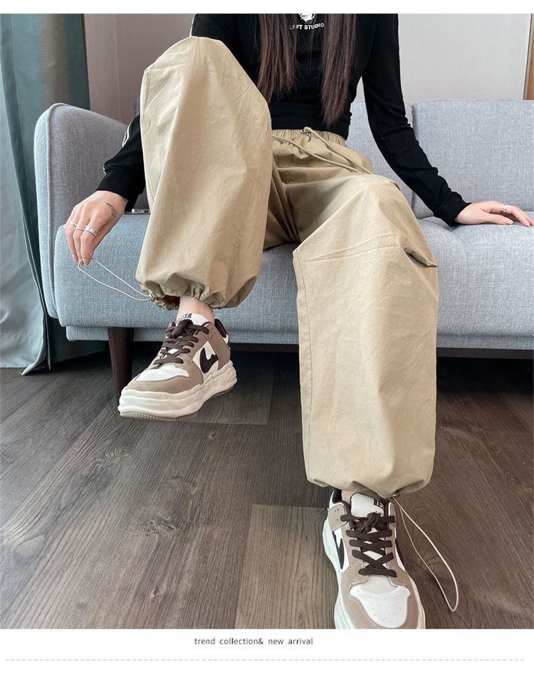 Pantalones Cargo Retro Americanos para Mujer, Estilo Delgado de Verano 2025 Nuevo Adelgazantes Casuales Rectos de Pierna Ancha Deportivos