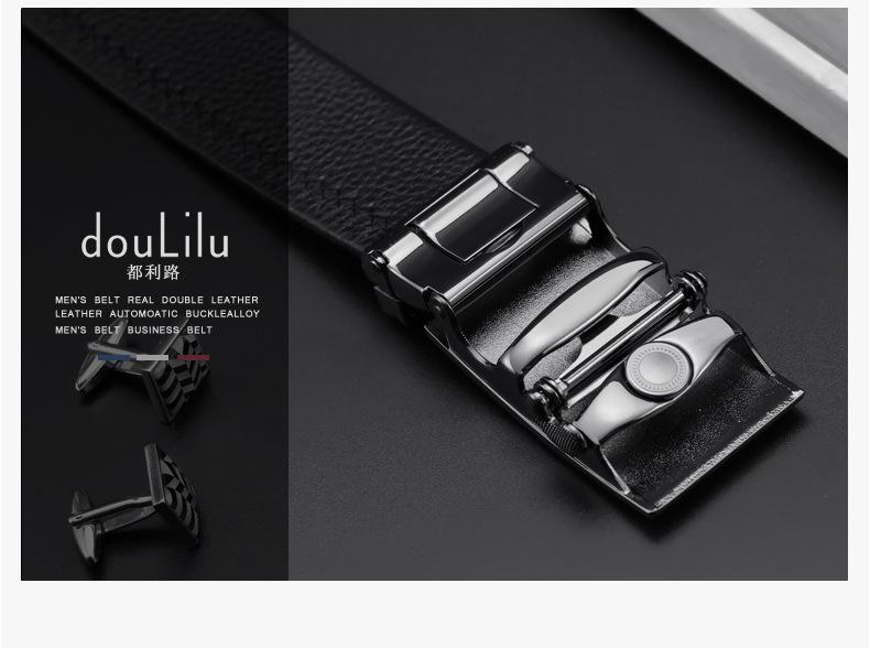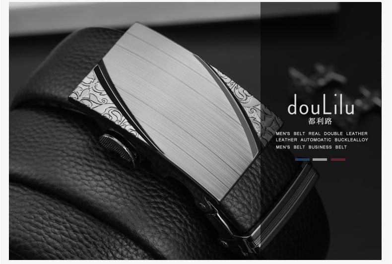 Cinturón para hombre Dulilu piel de vaca genuina de doble capa hebilla automática de alta gama cinturón para pantalón de hombre negocio fabricante de origen venta al por mayor