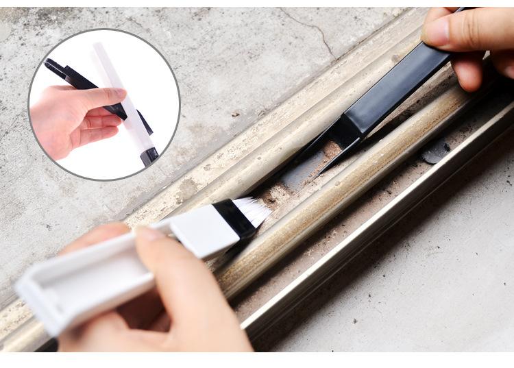 Cepillo limpiador de ranuras de puertas y ventanas, cepillo pequeño para ranuras, con recogedor, cepillo para huecos de esquinas muertas, limpieza de mosquiteras