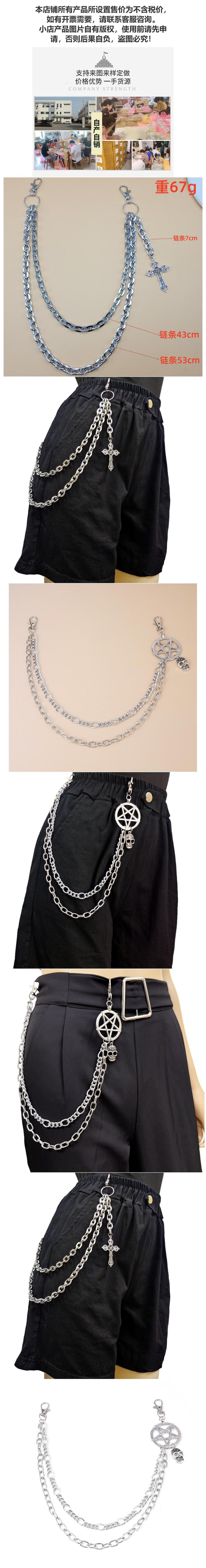Cross Pendant Trousers Chain White K, Large Five-Pointed Star Circle Pendant Trouser Chain White K