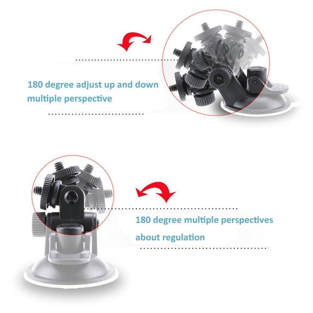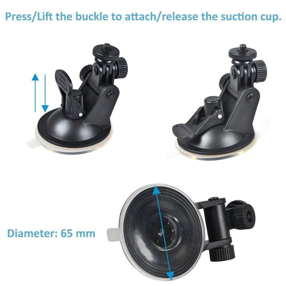 ● Un soporte de ventosa de bloqueo potente te ayuda a hacer videos y fotografías únicos. Está diseñado para asegurar la cámara de tablero y mantener la adhesión en el parabrisas durante alto impacto. Se puede fijar de forma segura a las ventanas de tu coche, al tablero u otras superficies no porosas, fácil de usar.