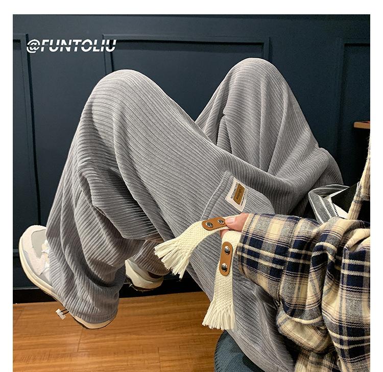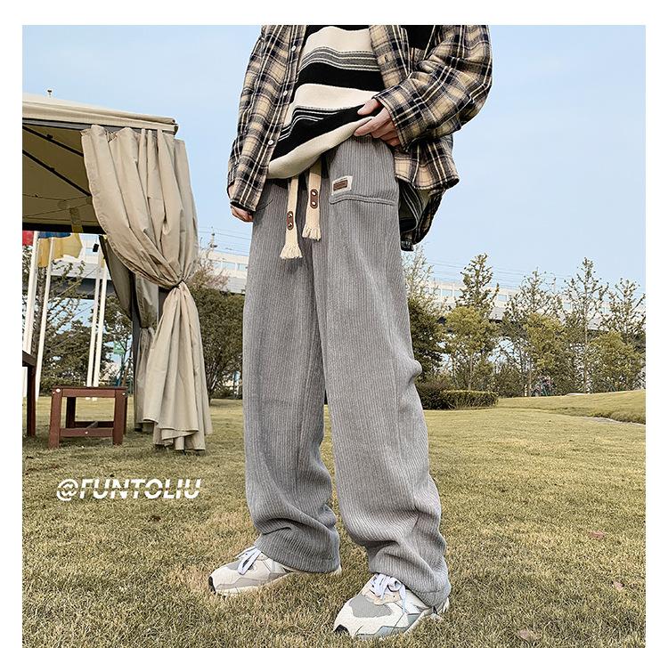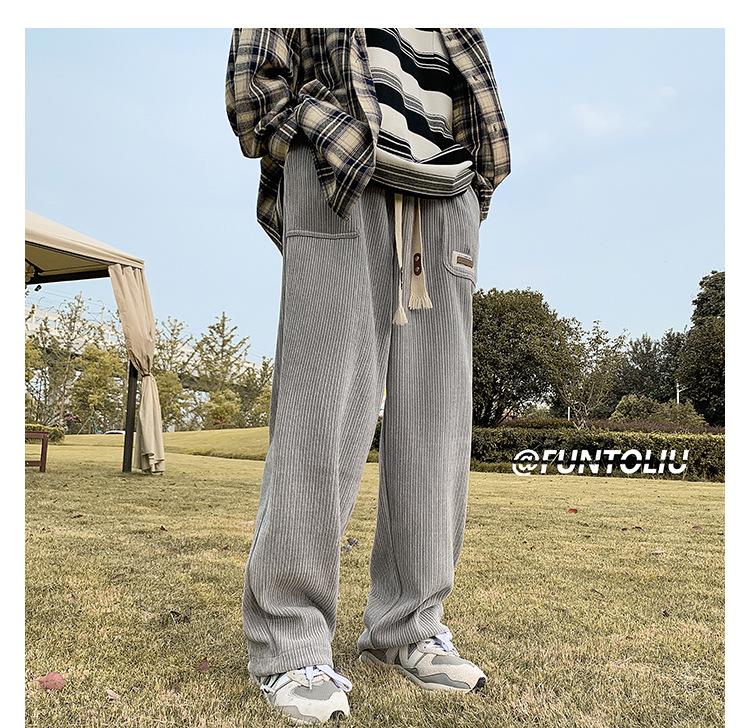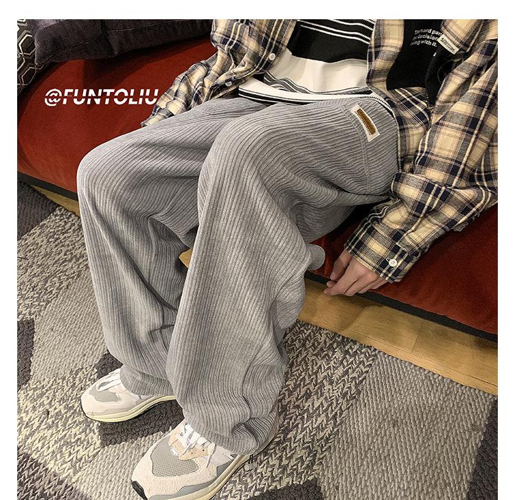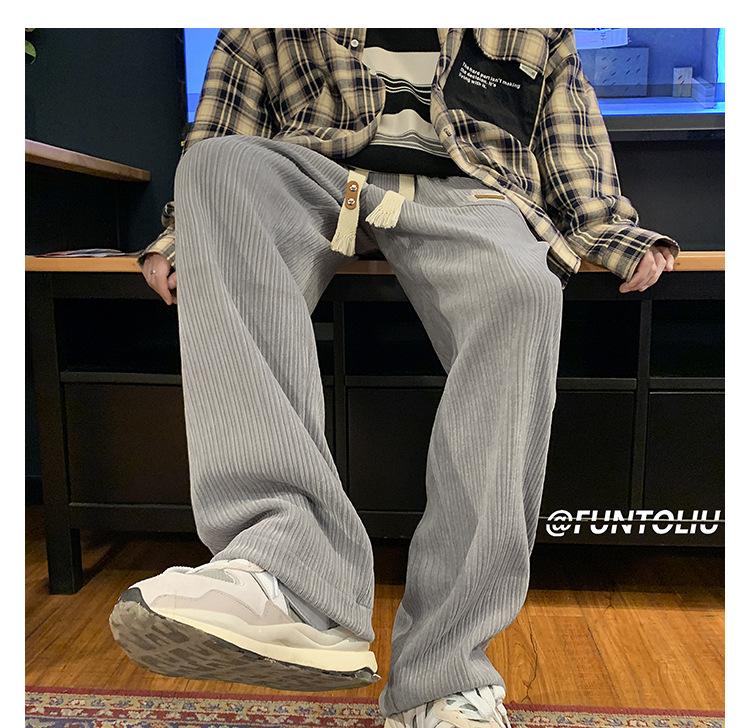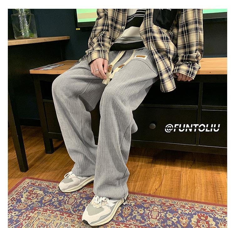 Pantalones de pana retro americanos para hombre, otoño, marca de moda urbana Ins, holgados, rectos, extragrandes, casuales