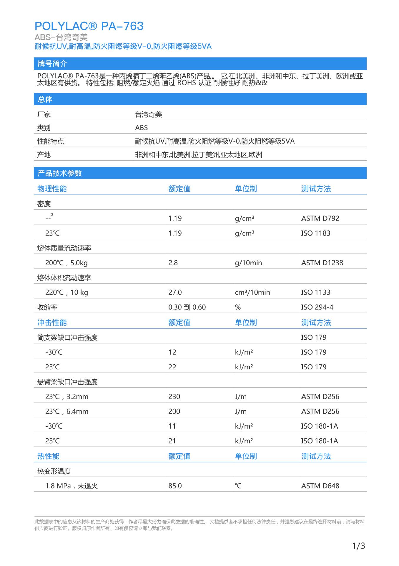 ABS Taiwan Chimei Pa-763 Retardante de Llama ABS Resistente a Altas Temperaturas Piezas de Carcasa Eléctrica Automotriz Ignífugo V0ABS