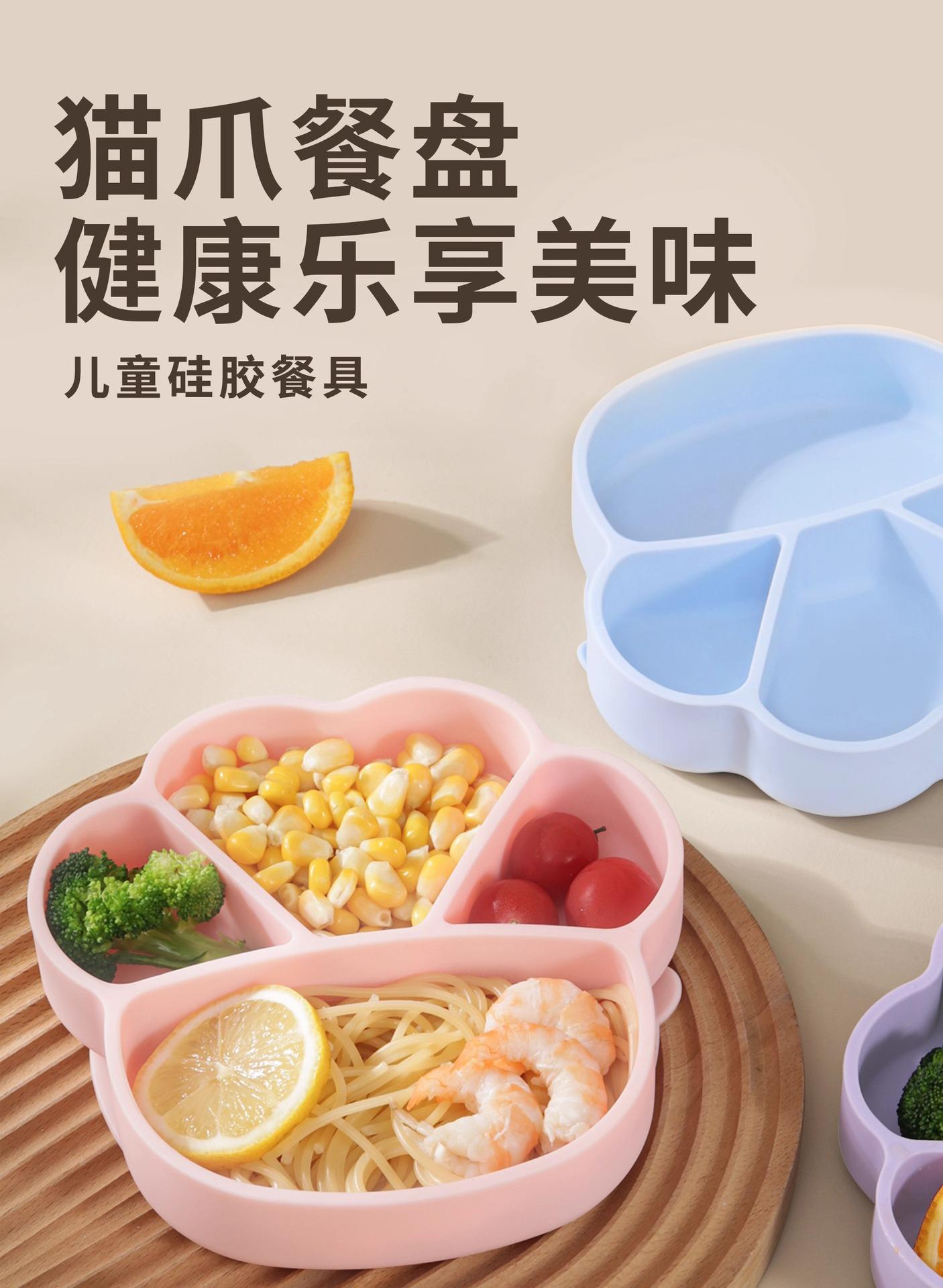 Plato dividido de silicona de grado alimenticio vajilla infantil con ventosa vajilla para comida de bebé diseño personalizado antideslizante y antivuelco