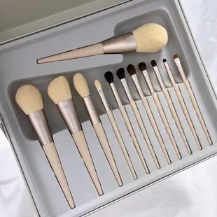 Nuevo Set de 12 Brochas de Maquillaje con Mango de Madera Morandi Brocha para Sombra de Ojos Pelo Animal Fibra de Maíz Brocha para Polvo Suelto Brocha para Rubor
