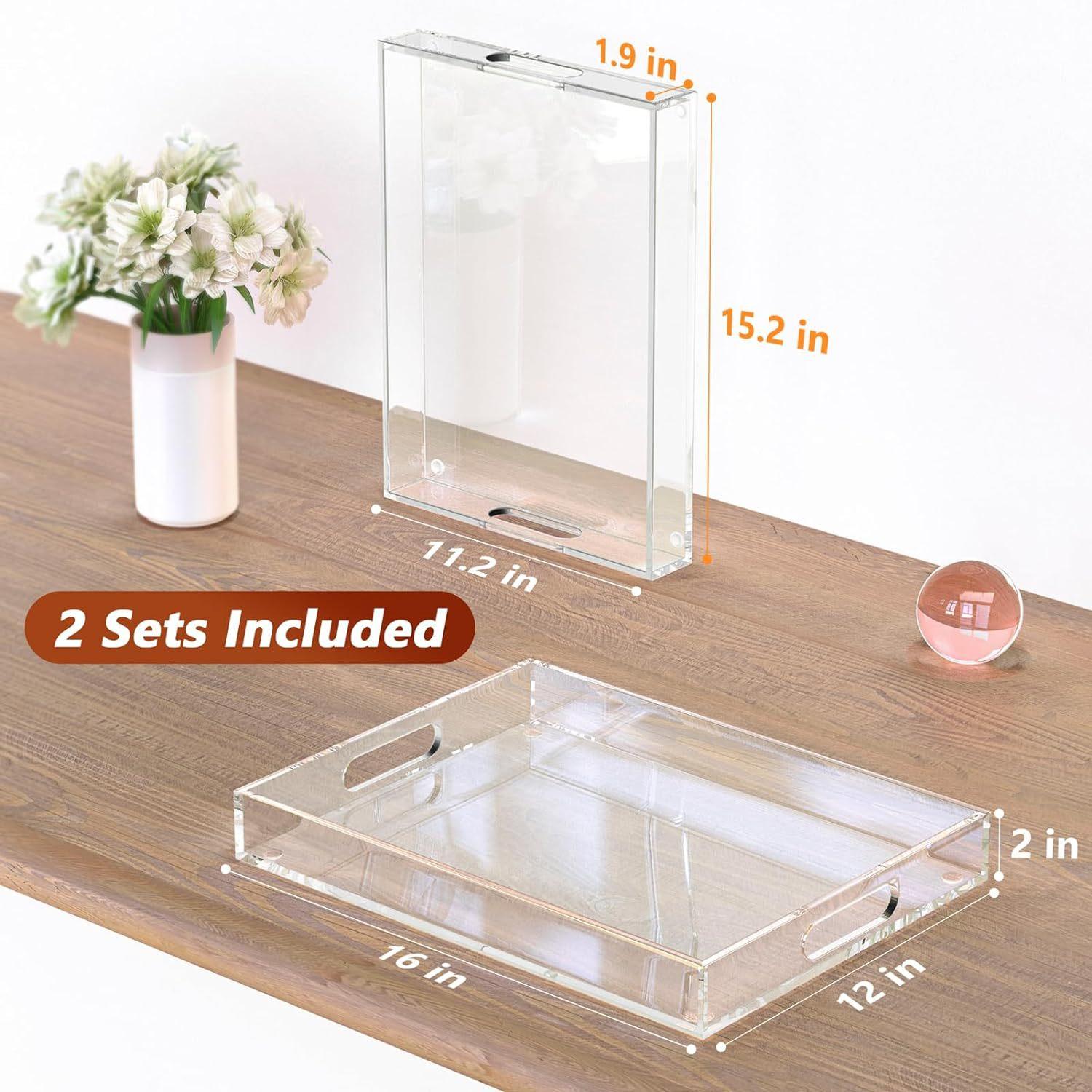 * ACRÍLICO PREMIUM: Disponibles en 16"×12"×2" y 15.2"×11.2"×2", nuestras bandejas de servicio transparentes vienen en dos tamaños diferentes, proporcionando un amplio espacio para servir y organizar. Experimente una durabilidad y elegancia inigualables con nuestras bandejas de servicio grandes. Hechas de acrílico premium, son lo suficientemente duraderas para resistir el paso del tiempo. Diga adiós a las preocupaciones por la corrosión, el desgaste por la intemperie, la oxidación o la decoloración.