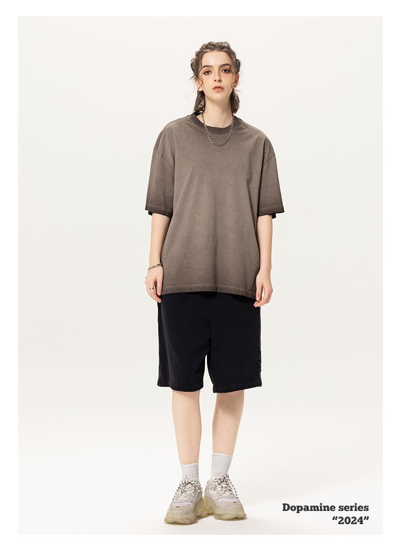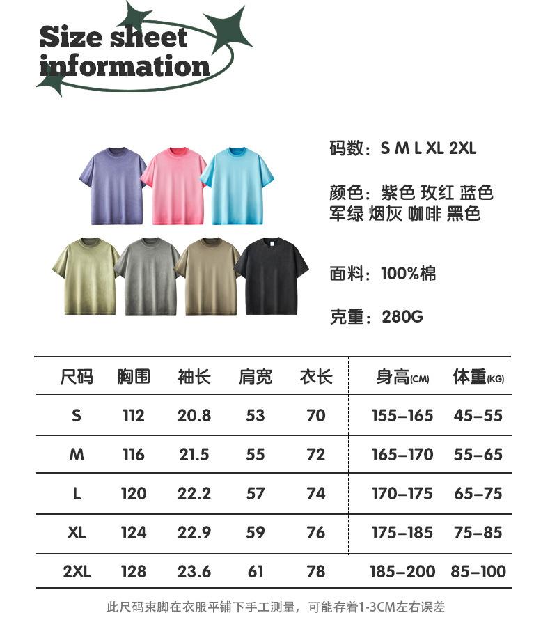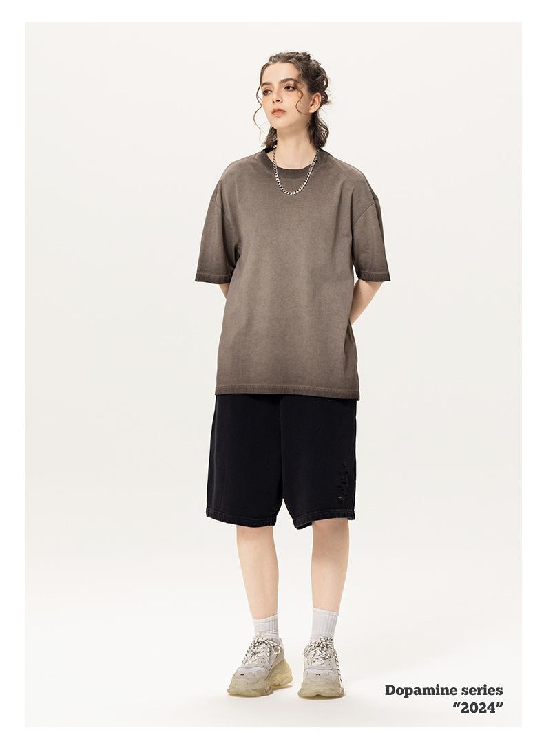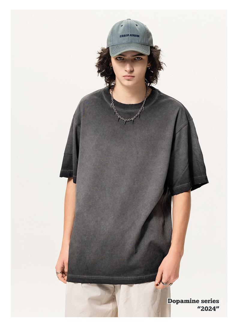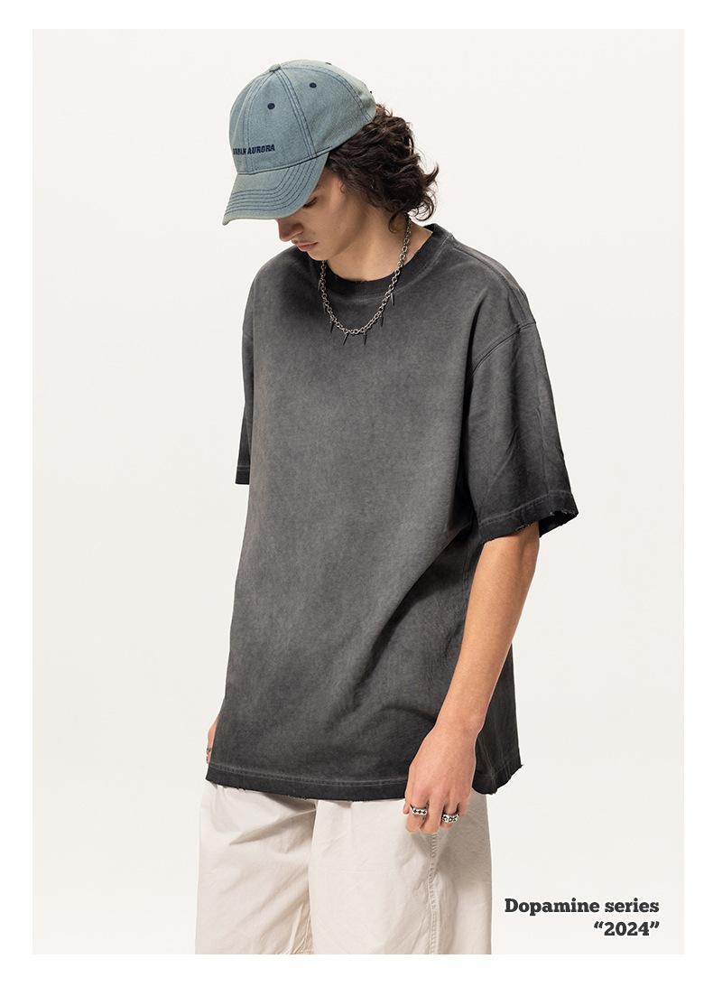 Camiseta de Manga Corta para Hombre 280G Lavada Desgastada Personalizada Camiseta de Manga Corta para Hombre Marca Trendy Americana Ins Dopamina Algodón Puro