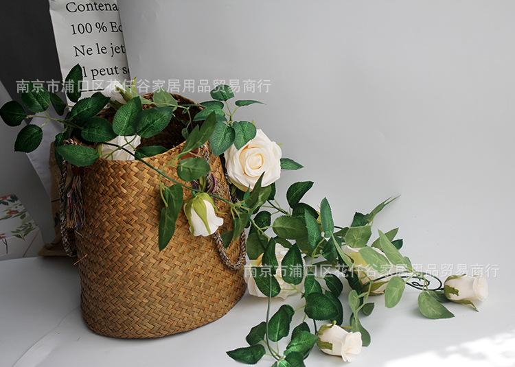 【Tamaño】: El tallo entero mide aproximadamente 2 metros de largo, con 4 cabezas de flores, 5 capullos de flores y 17 hojas (medición manual, los errores son inevitables