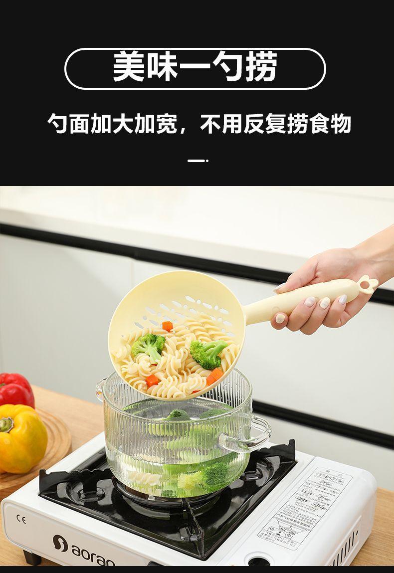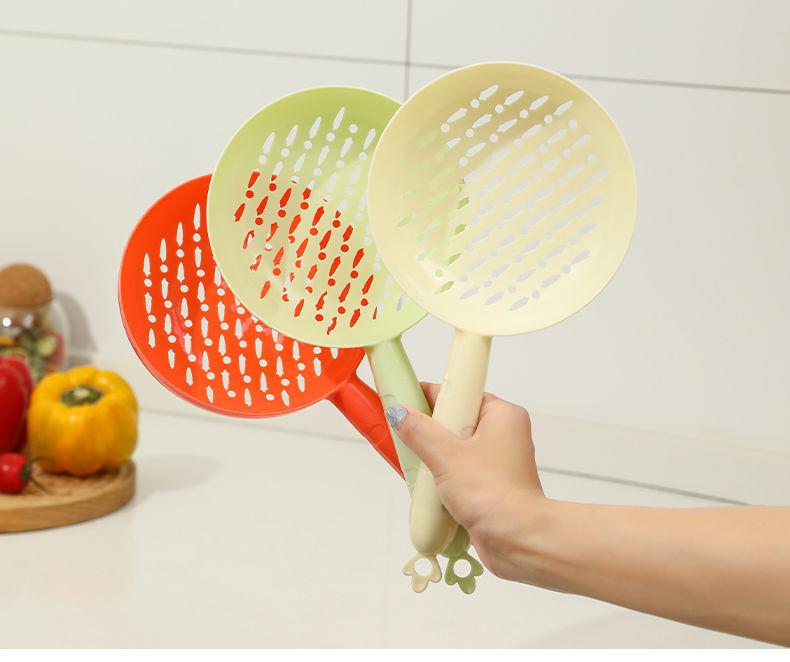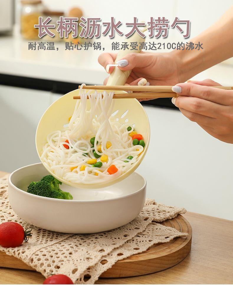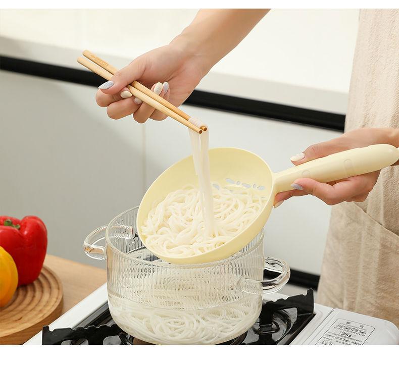 Cuchara grande para fideos resistente a altas temperaturas con revestimiento para el hogar, colador de fideos de cocina con mango largo y grueso, multifuncional, celebrada en Internet