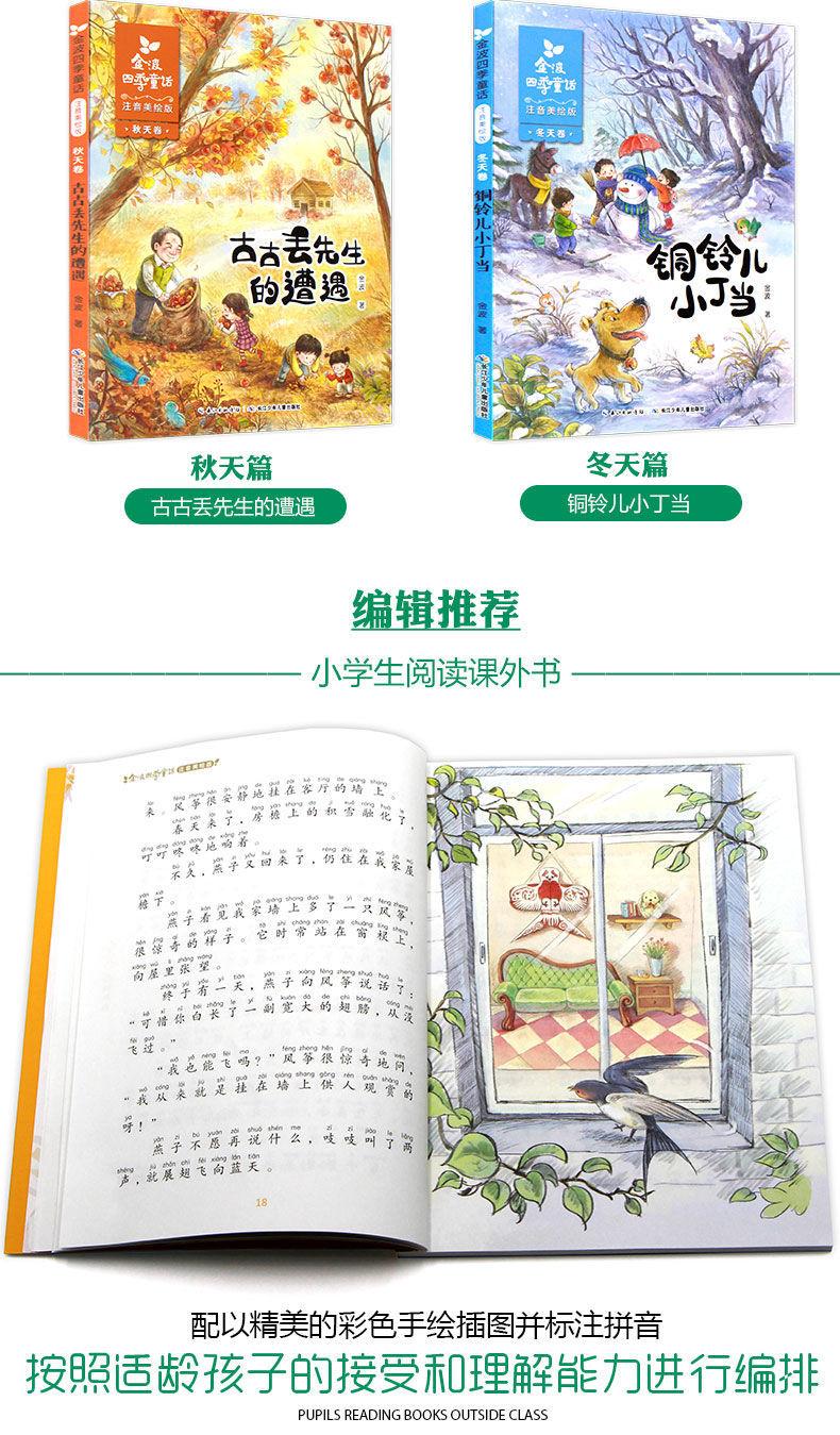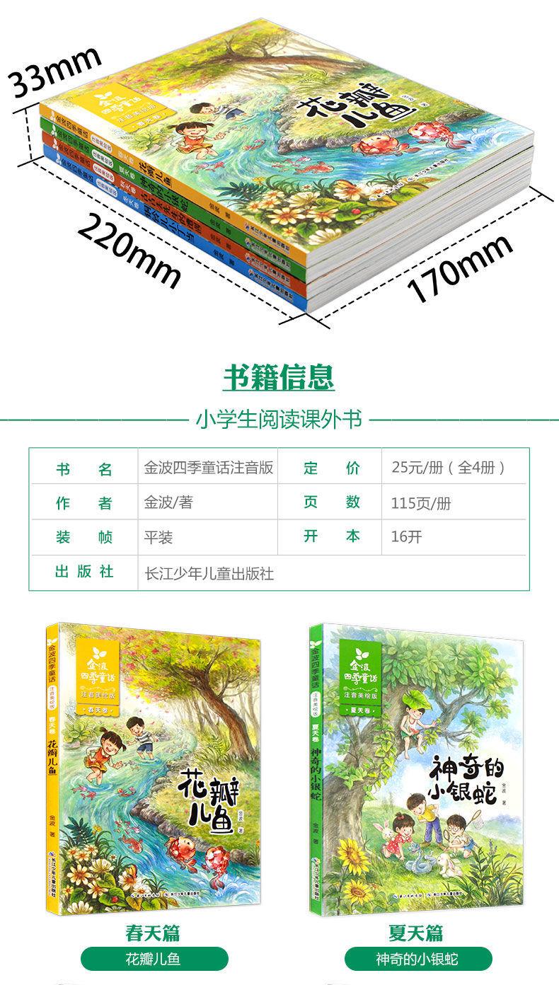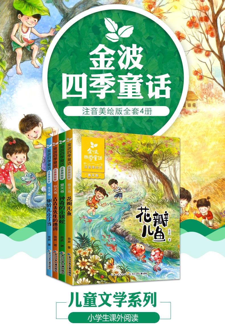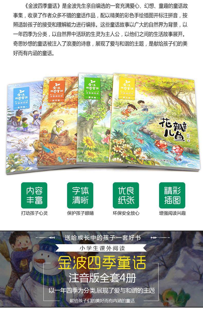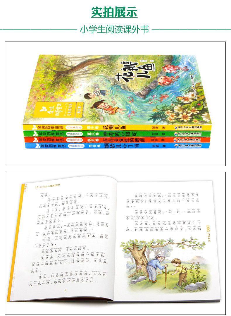 Cuentos de Hadas de las Cuatro Estaciones de Jinbo Versión Fonética de Primer Grado, los 4 Volúmenes de Artículos Hermosos, Pez Pétalo, Libros Extracurriculares de Lectura Obligatoria para Estudiantes de Segundo Grado