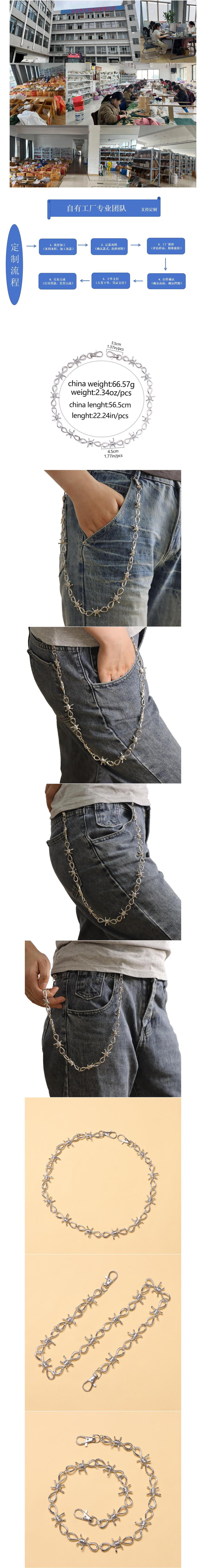 Cadena de cintura de espinas de personalidad moderna hip-hop europea y americana exagerada estilo punk genial cadena para pantalones de púas cadena para ropa mujeres