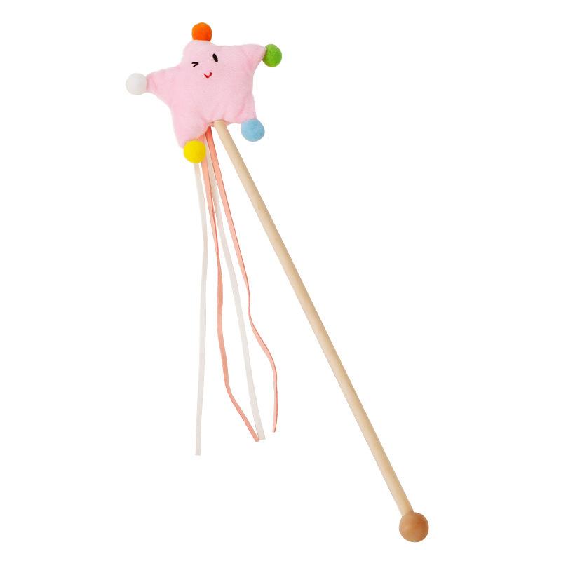 Wooden Cat Teaser Wand【Pink Ball Mouse】
