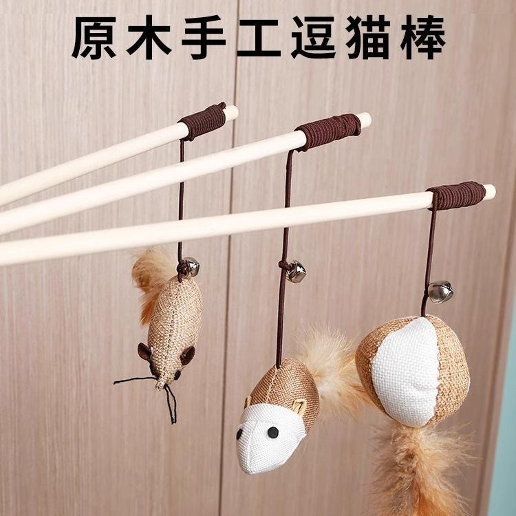 Wooden Cat Teaser Wand【Linen Little Mouse】, Wooden Cat Teaser Wand【Lollipop】, Wooden Cat Teaser Wand【Pink Ball...