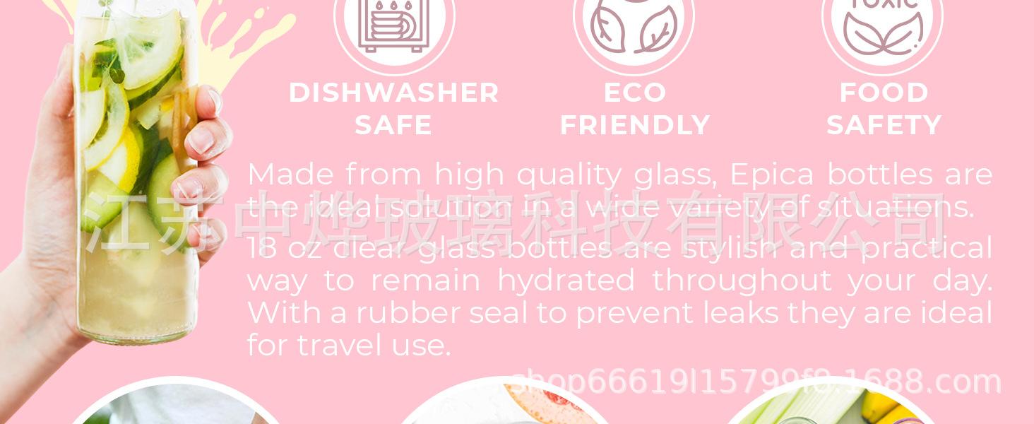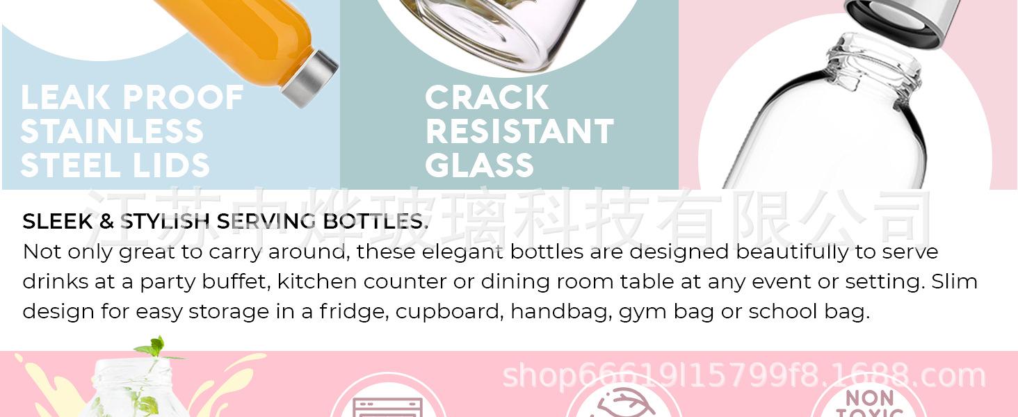 Vaso de Agua, Botella de Vidrio Transparente para Té con Leche, Botella para Bebidas, Vaso Publicitario Portátil con Boca Roscada Sellada de Grado Alimenticio, Botella de Agua Deportiva