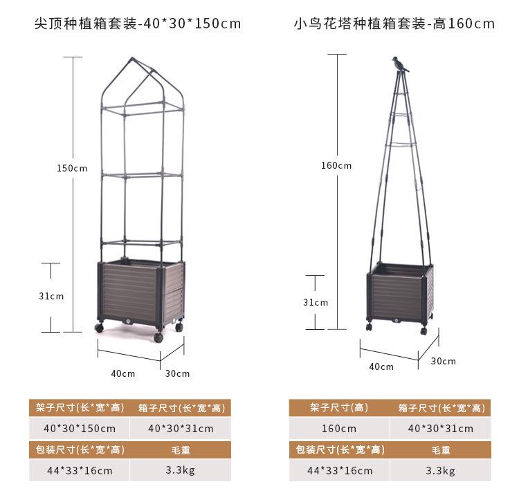 Square top planting box 30*30*160, Square top planting box 40*30*160, Spiral planting box 40*30*150, Flat plan...
