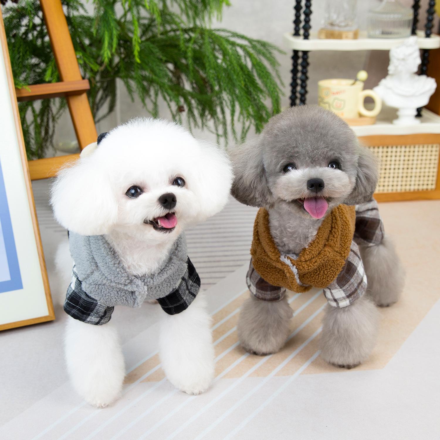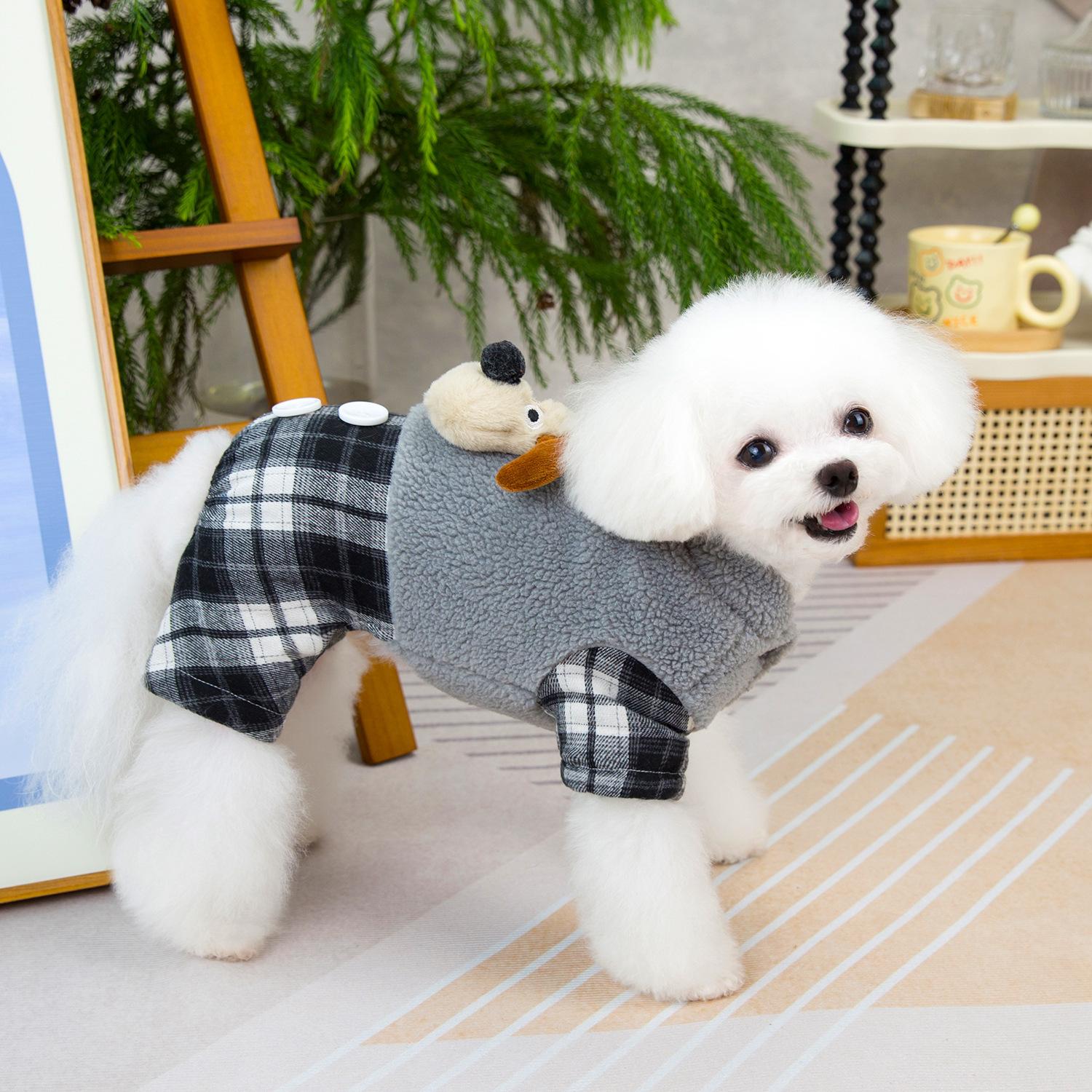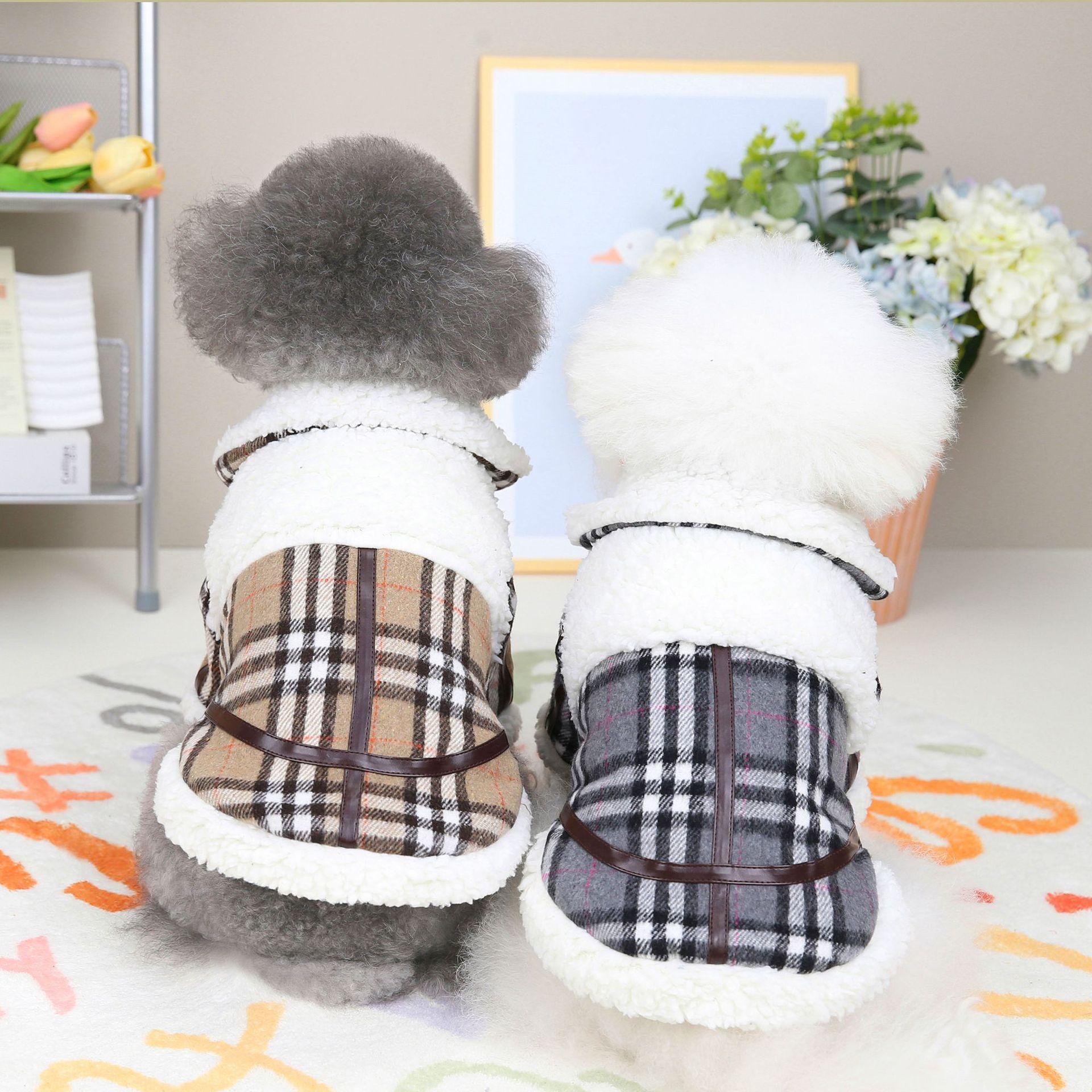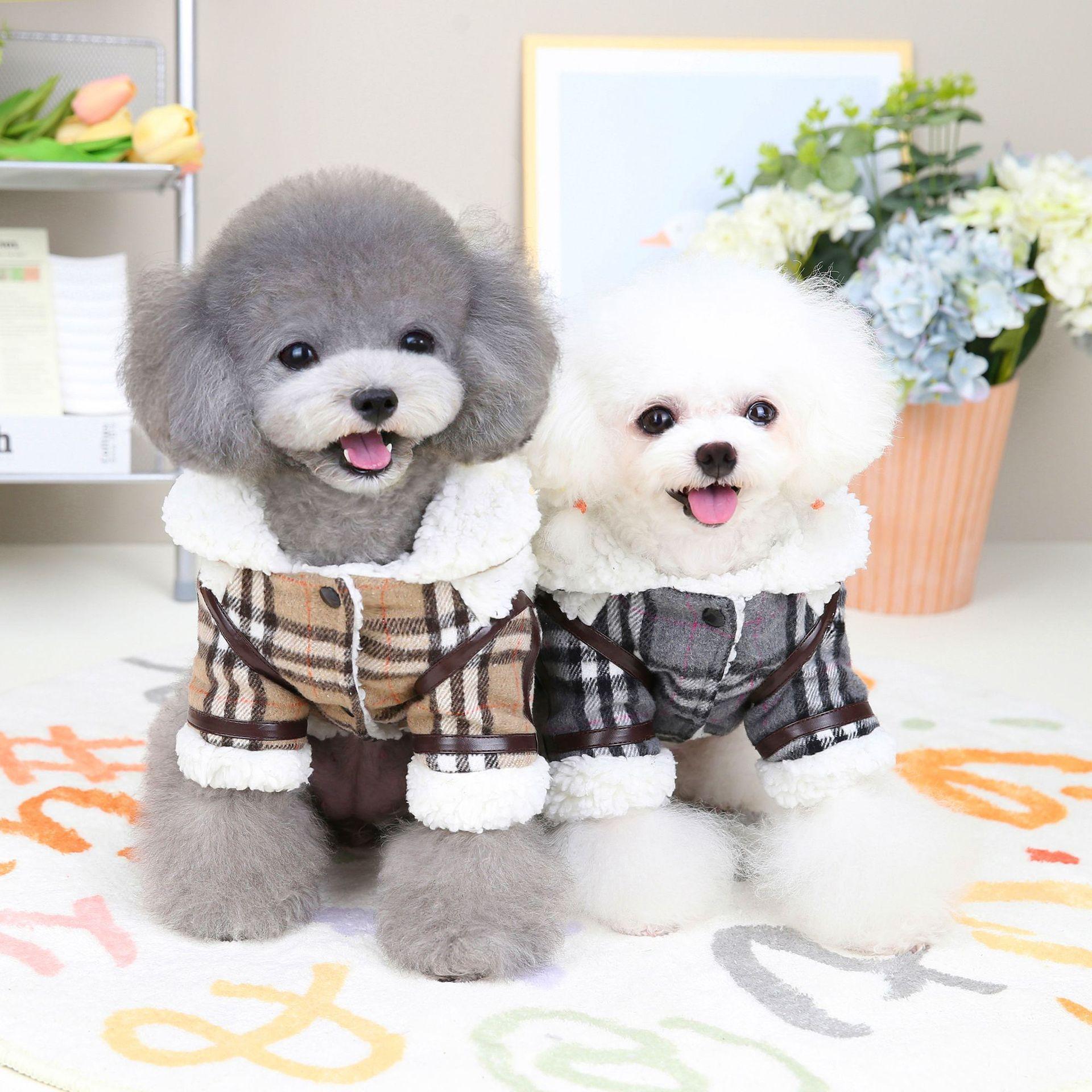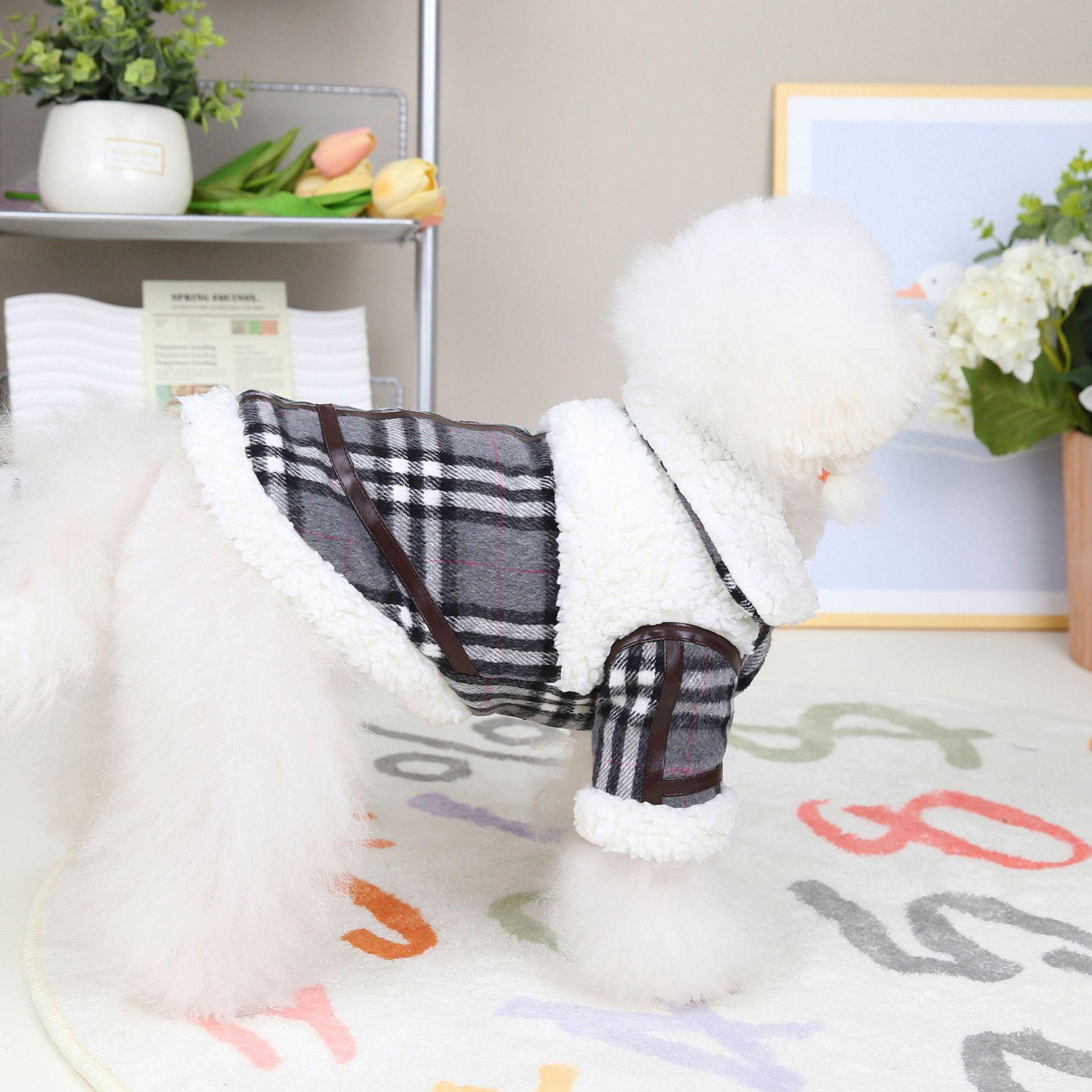 Mascota Invierno Cuadros Blanco y Negro Cortavientos Cálido Ropa Exterior Perro Año Nuevo Felpa Jersey de Cuatro Patas Ropa Sencilla para Perro