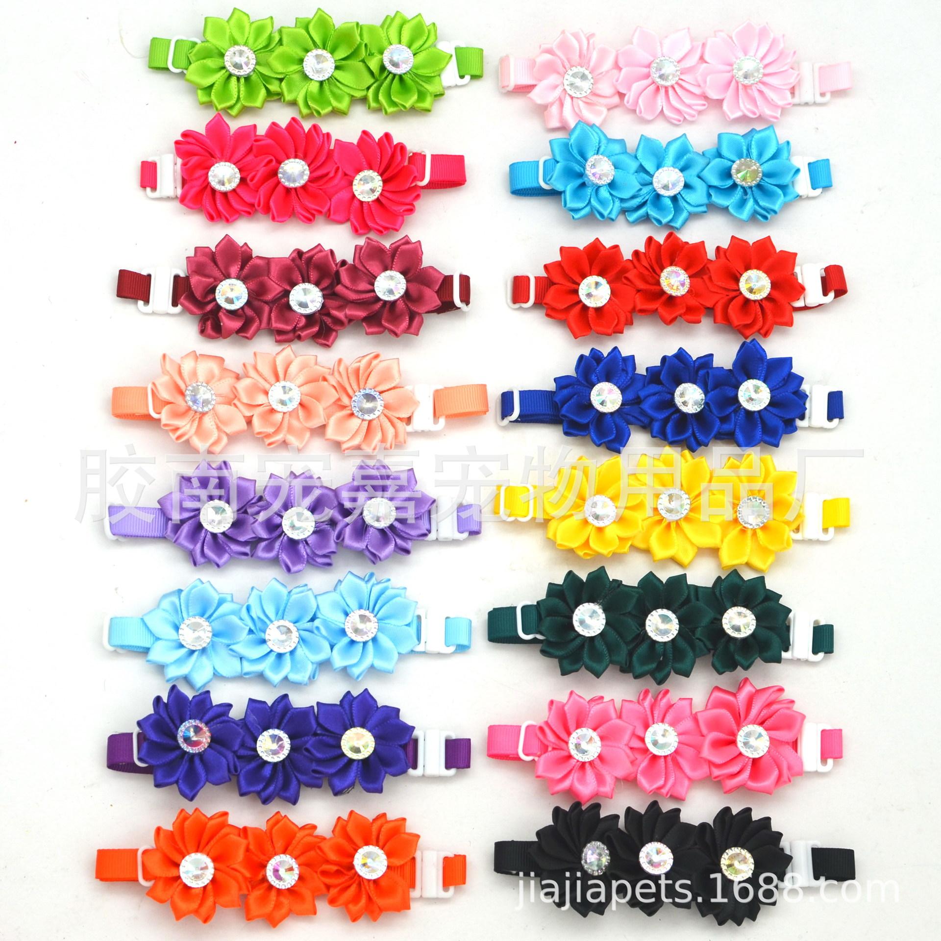 【Estilo Bebé】Corbatín Hecho a Mano Flor de 16 Pétalos Tres Piezas con Pedrería, Múltiples Colores Disponibles, Colores Mixtos Enviados, Collar Ajustable.