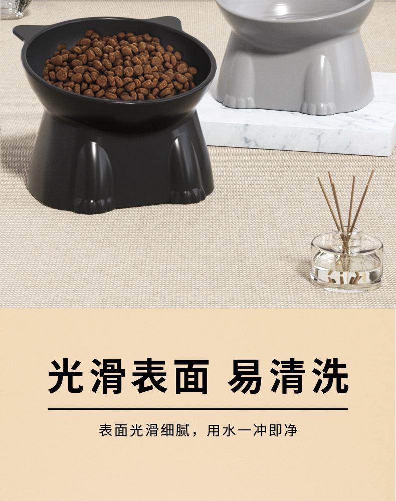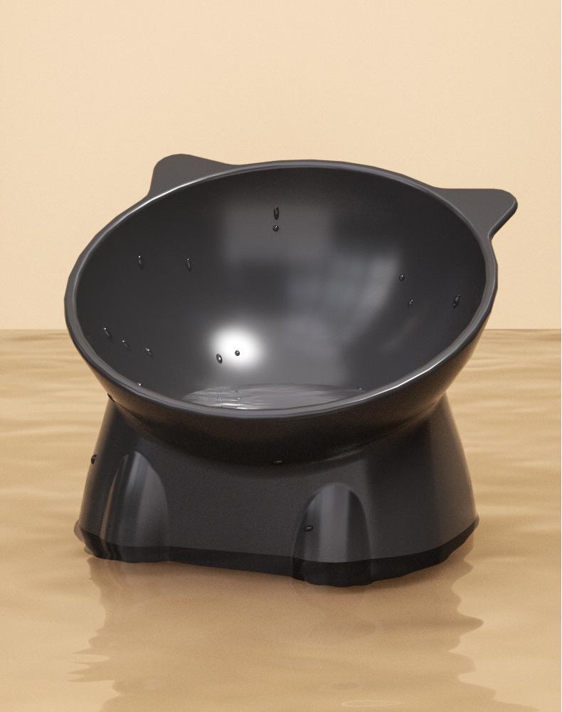【Extra Thick Large Capacity】Cat-Shaped High-Footed Bowl - Obsidian Black