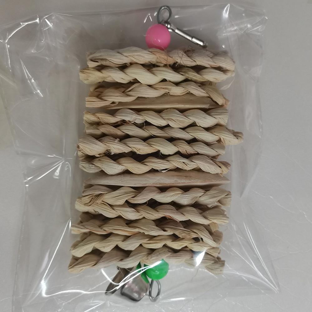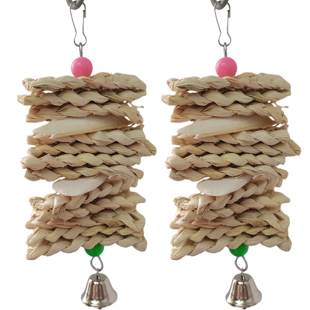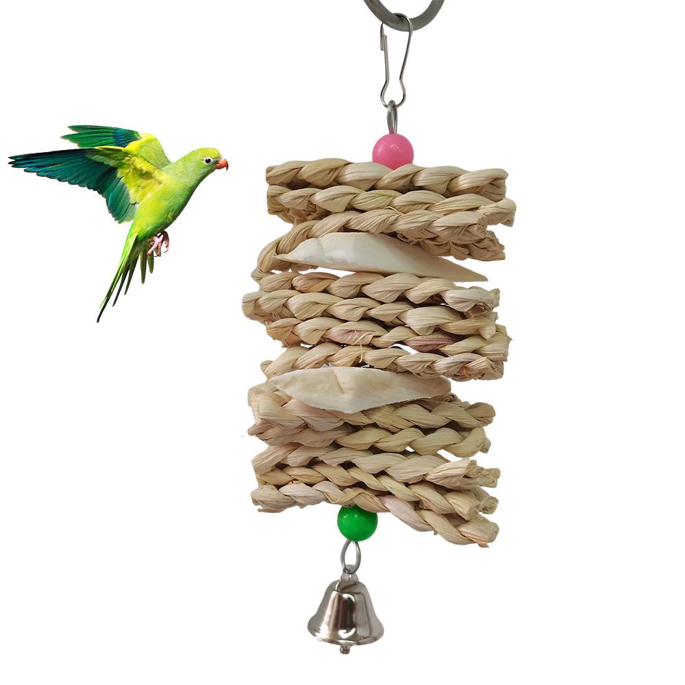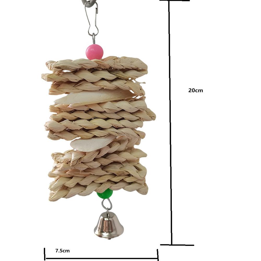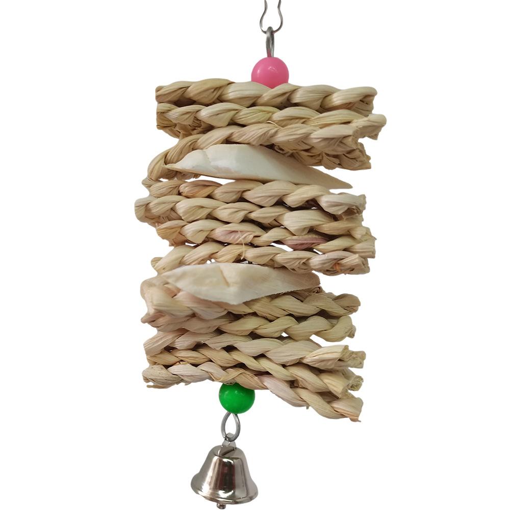 Fabricante Venta Caliente Juguetes para Loro Juguetes para Pájaros Tejido de Hoja de Maíz Cuerda Colgante de Hueso de Sepia Cuerda para Masticar Juguetes para Pájaros