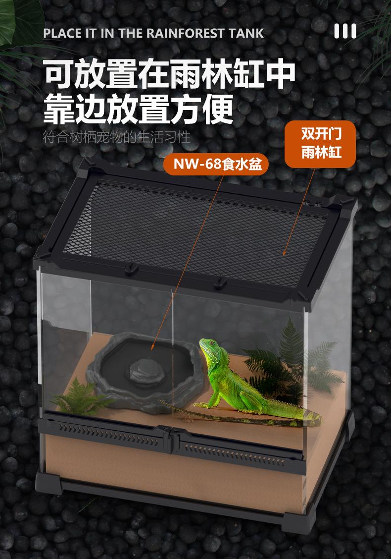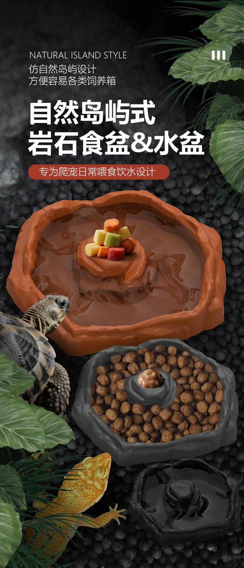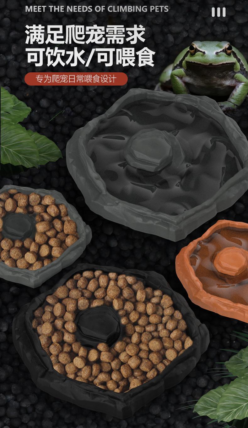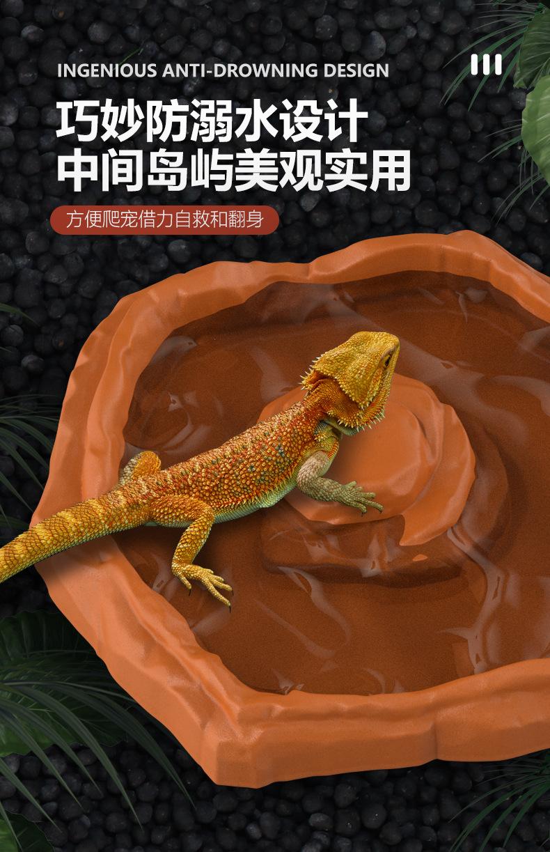 Gecko Lagarto Tortuga Mascota Anti-Ahogamiento Isla Artificial Roca Cuenco para Comida con Plataforma para Comida Bebedero de Agua