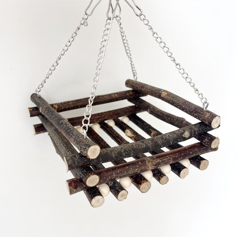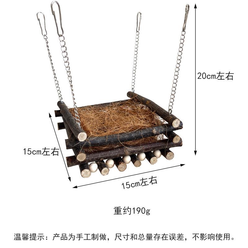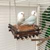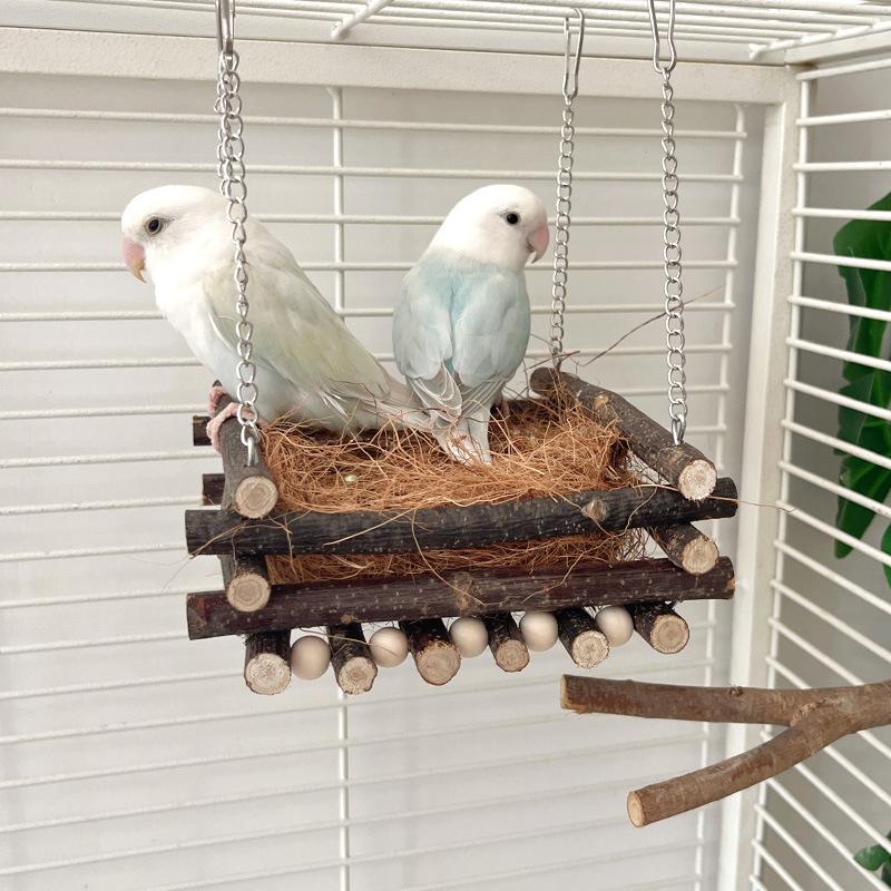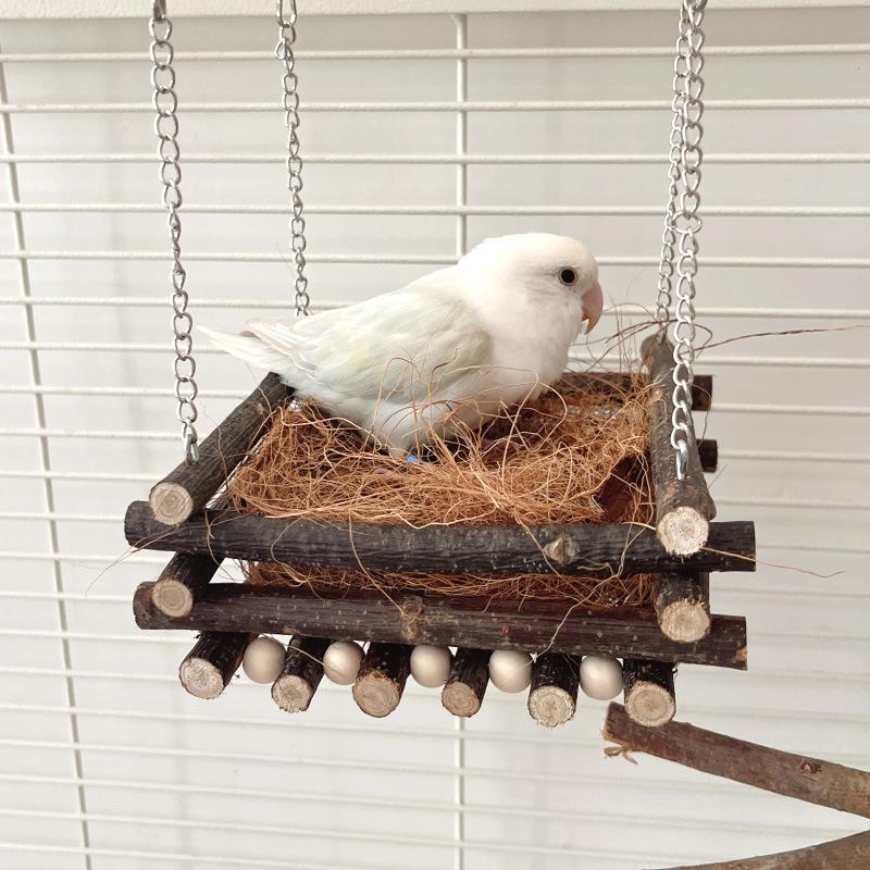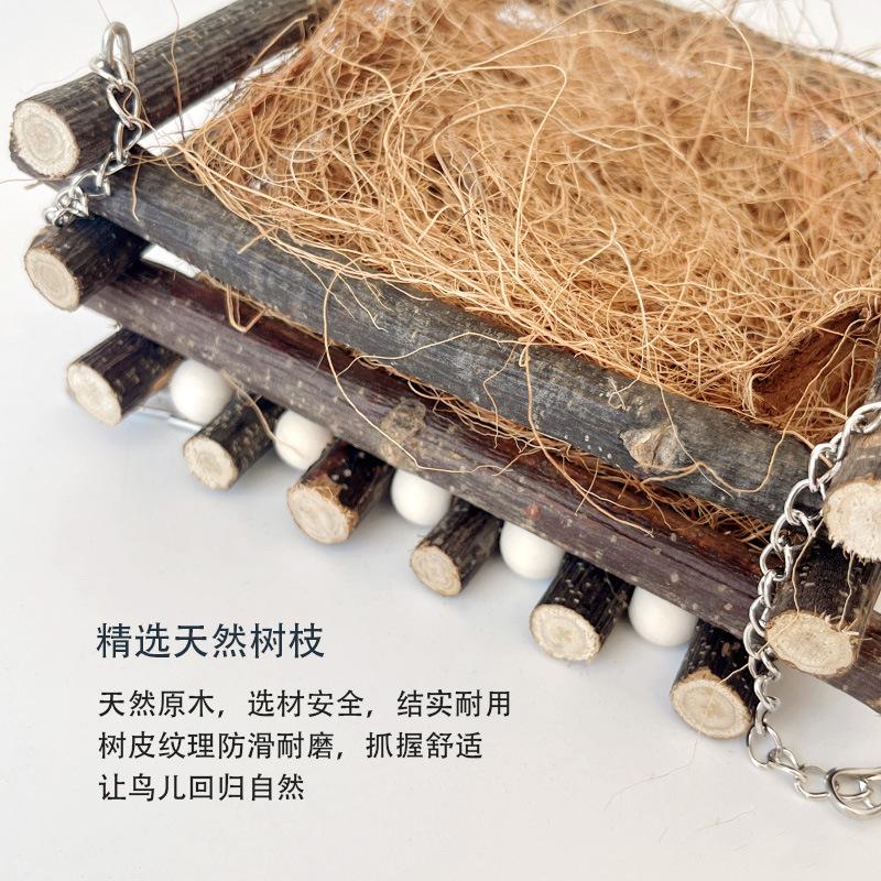 Juguete de Madera para Loro Pájaro Masticar Rama para Trepar Columpio Descanso Puesta de Huevos Hamaca para Loro Estera de Coco Nido Colgante para Pájaro