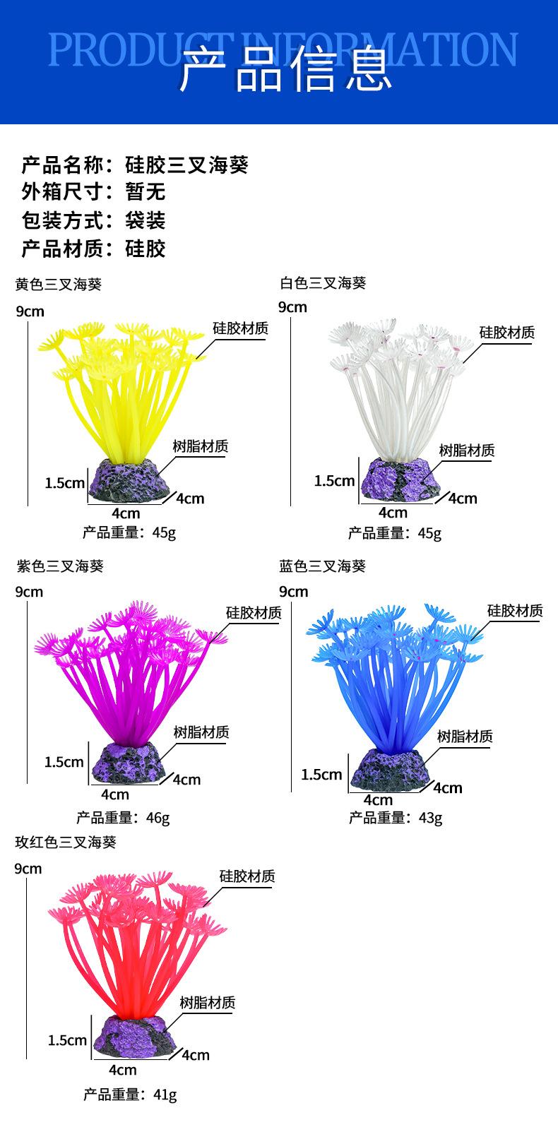 Adornos Paisajísticos para Acuario Escenario de Acuario Simulación Coral Silicona Ventas Directas de Fabricante Anémona de Mar de Tres Puntas de Silicona