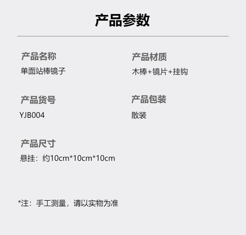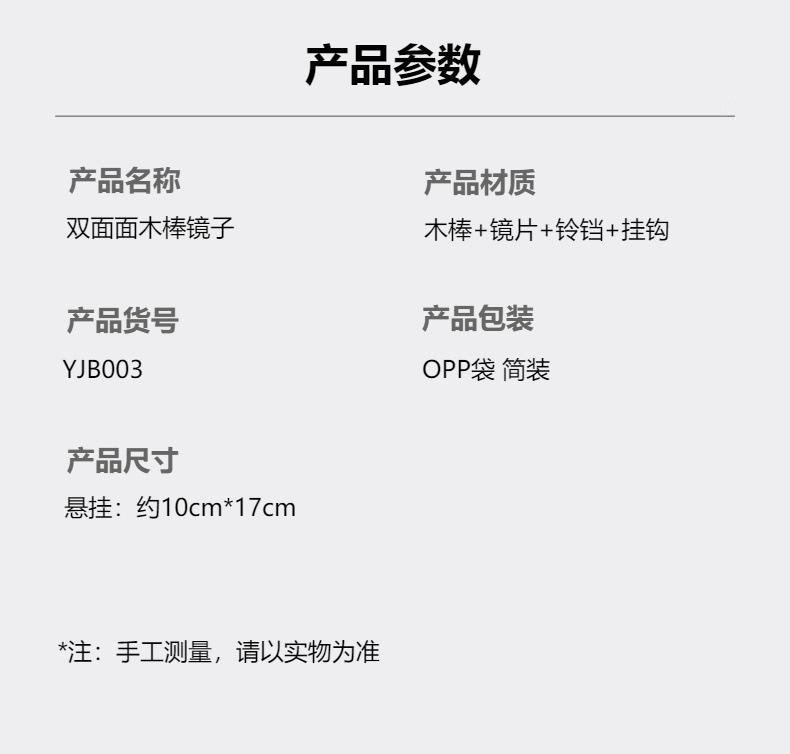 Double-sided wooden stick mirror 10*17cm