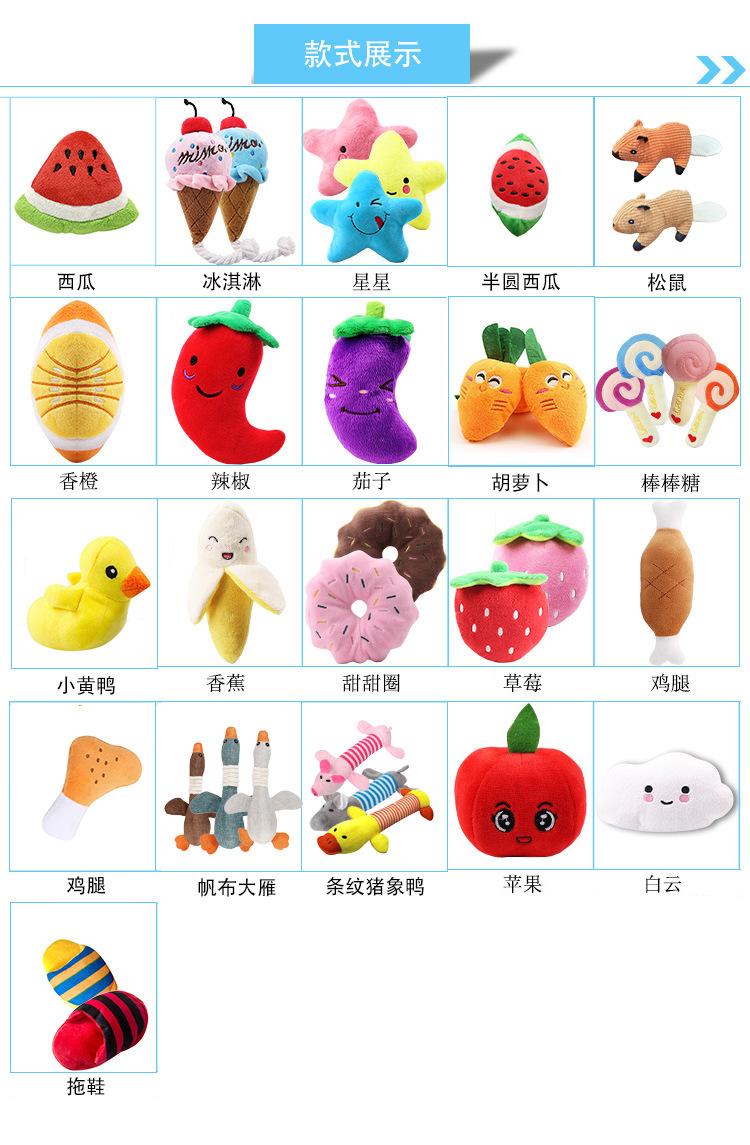 Nuevos Juguetes Resistentes a Mordeduras para Perros y Gatos, Lindos Dibujos Animados de Peluche de Frutas y Dulces con Sonido, Ventas Directas de Fábrica al por Mayor