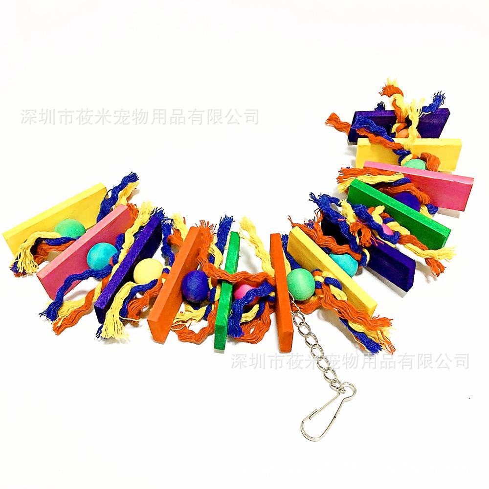 Suministros para loros juguetes para aves mascotas bloque de madera de colores cuerda de algodón cuerda colgante cuerda para morder columpio juguete para morder 106g