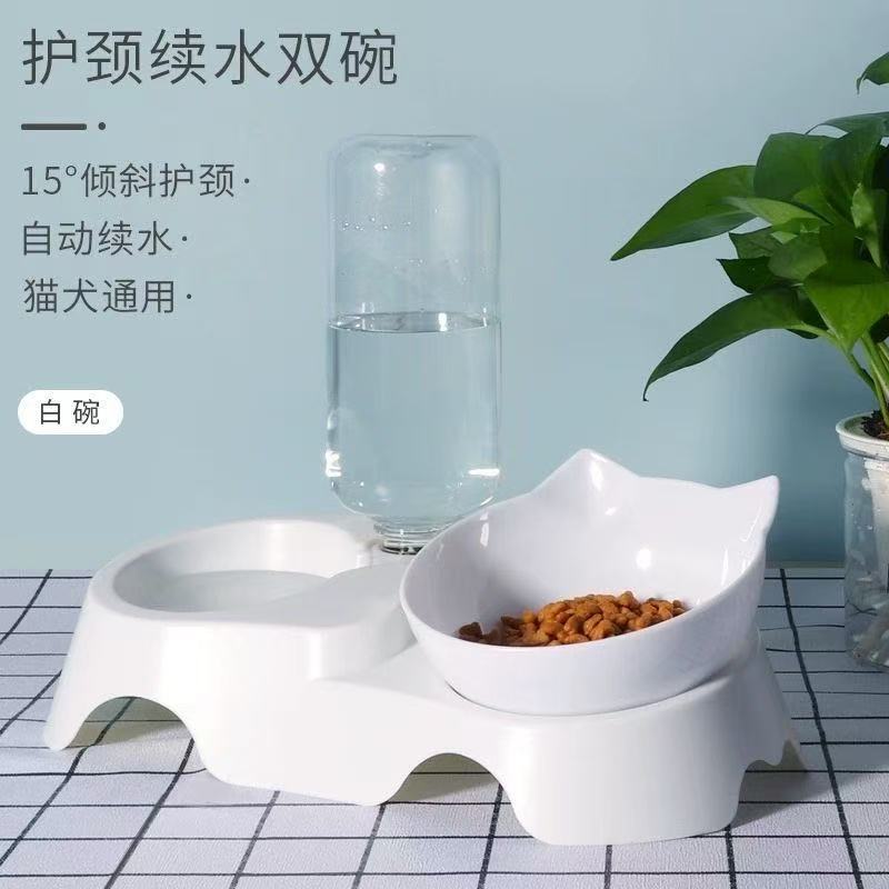 Tazón para Gato Tazón Doble Tazón para Comida de Gato Tazón para Perro Protección de Cuello Bebedero Automático Tazón de Alimentación Inclinado Tazón de Agua Tazón para Comida de Gato Perro Suministros para Mascotas