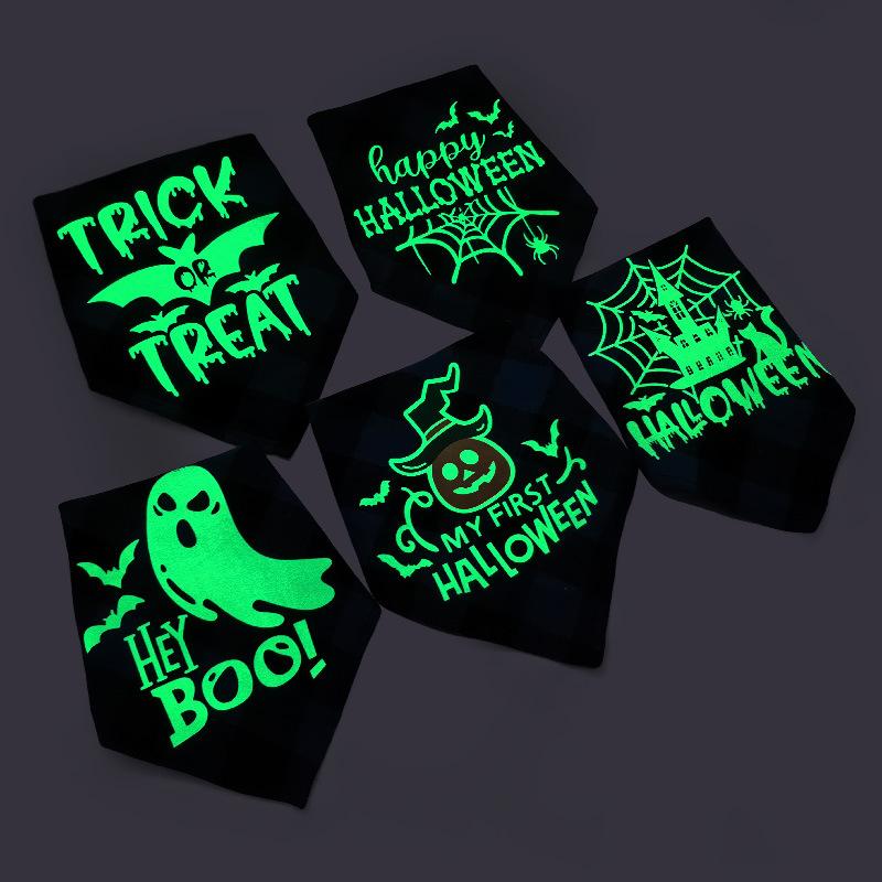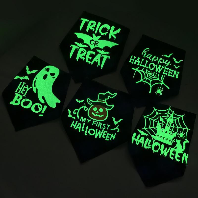 Toalla triangular para mascotas Amazon Halloween luminosa mascota cumpleaños toalla de saliva bufanda linda joyería babero mayoreo