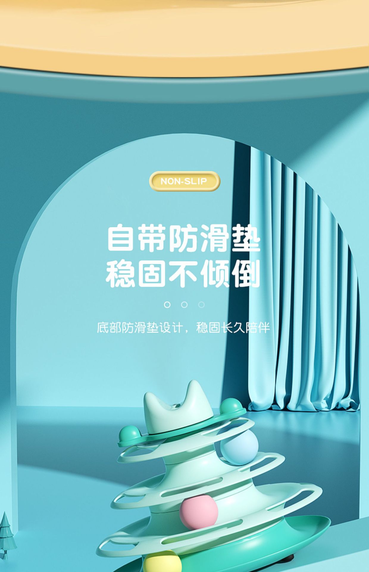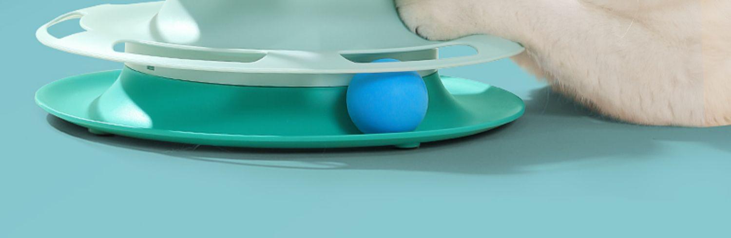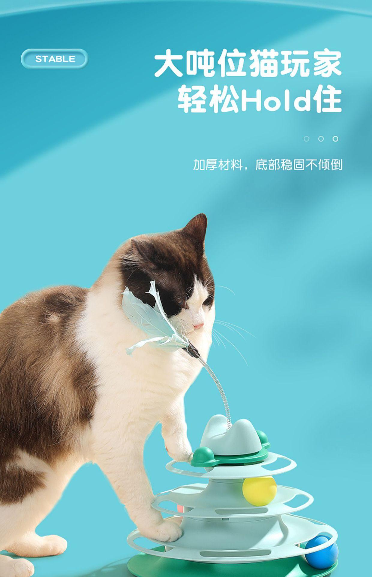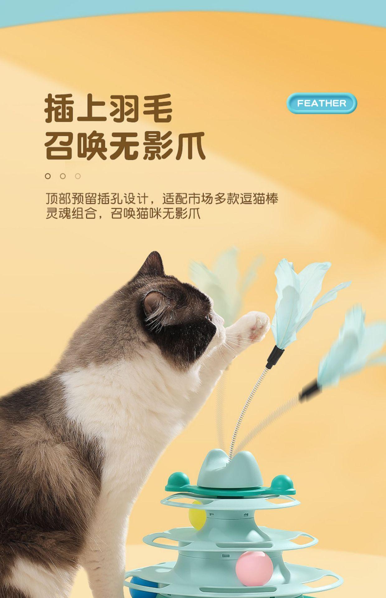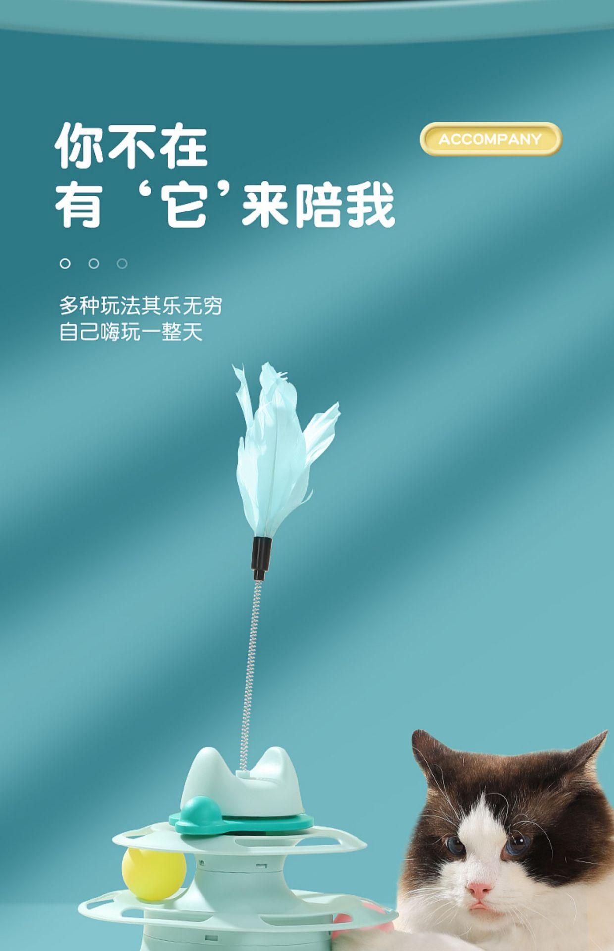 Cat turntable [blue] with feather + steel wire cat teasing stick